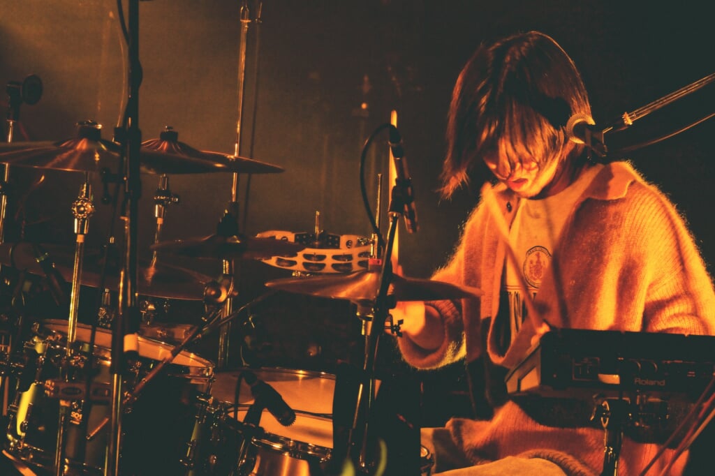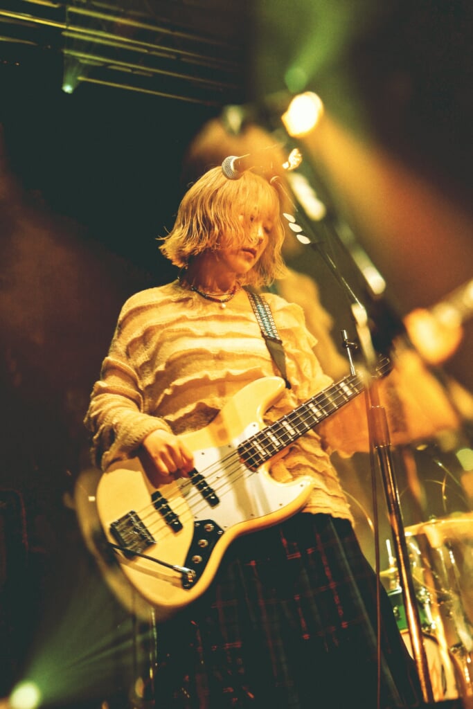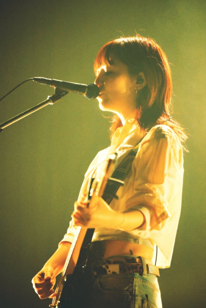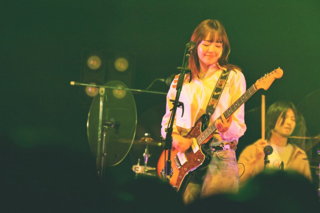 さらに「センチメンタルシスター」に「あのこのゆくえ」とミニアルバム『かたつむりになりたい』からの楽曲を続ける。yonigeのいたいけな一面が強調される一幕だ。ここから一段とサイケデリックな「催眠療法」にグッとトーンを落とした歌唱が鈍く響く「Club Night」で引き込む、潜在意識に訴えかけるような構成だ。