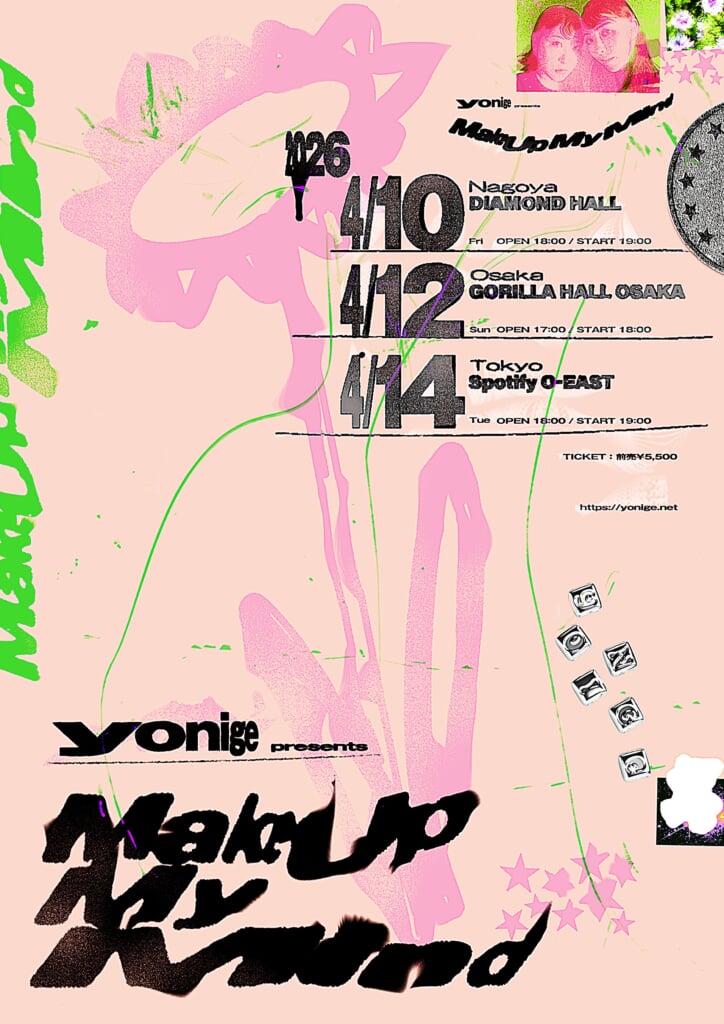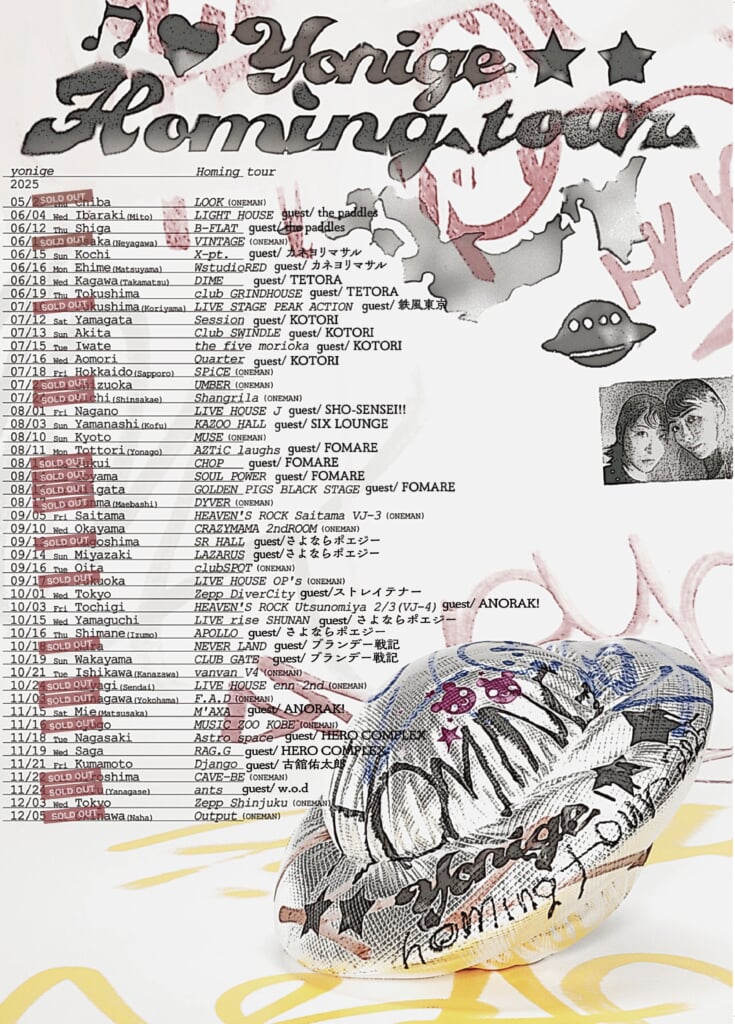 2026年4月の東名阪ツアー<Make up my mind>の開催を発表し、さらなる飛躍を約束したyonige。「ワンルーム」に「さよならバイバイ」と、長い時間バンド史と並走してきた曲を披露してZepp Shinjuku公演は幕を閉じた。これで<Homing tour>48公演中の47公演目が終了、最後に沖縄へと渡ってyonigeの長い旅が幕を閉じる。