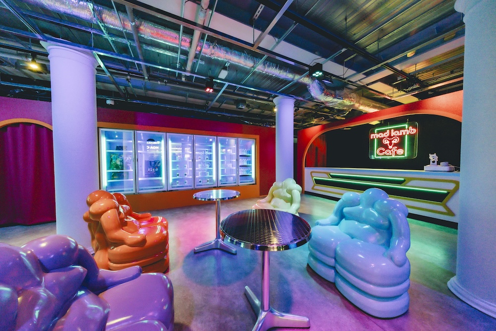 「mad lamb café」という架空のカフェをテーマにした会場では、その世界観を体験できる装飾、音楽が流れ当企画のために用意されたドリンクも販売。加えて、ストアロゴや当ストアのために描き下ろされたキャラクターをモチーフにした多数のアイテムも手に入れることができる。ポップアップストアならではのホームグッズやアパレルなど、コンセプトに合わせてこだわりをもって制作された新アイテムが、バラエティー豊かに展開されている。