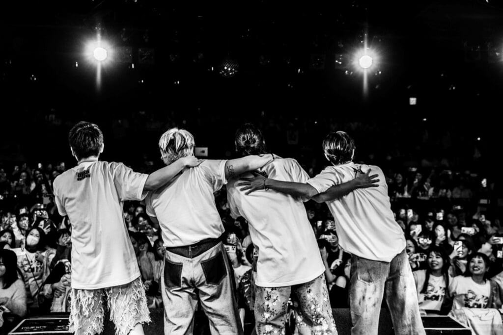 メンバーがステージを降りてからも、客席のファンから「僕らの街」 の合唱とアンコールが鳴り止まない中、再び4人がステージに登場。ファンの期待に応えるように「共感性自尊」「Encore」を披露したのち、集合写真を撮影しているとファンからの寄せ書き横断幕がプレゼントされるサプライズも。そして彼らの作品の中でも大切な1曲でもある「M7」を届け、本当に最後の1曲として「同じ目線で届けたい」という言葉をそのまま体現するように客席の中へと歩み出て「僕らの街」を歌い切った。