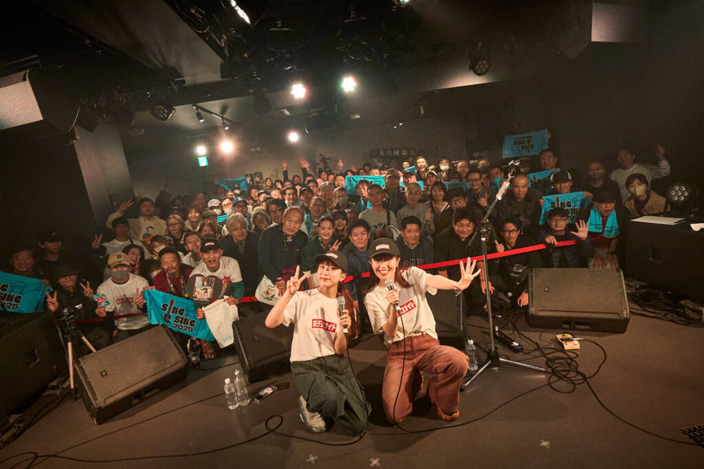 ホーンサウンドを用いたソウルフルな「大感謝祭!」で晴れやかに本編を締めくくると、アンコールでは自身のグッズで丸山純奈のようにキャップ+Tシャツファッションに身を包んだ八生が登場する。「東京の苦くてくやしい思い出が、楽しいものに変わっています」とこの日の感謝を告げ、ステージに丸山純奈を呼び込んだ。そして丸山純奈が何度もリピートしているという八生の楽曲「線」を、八生がギターボーカル、丸山純奈がハンドマイクスタイルのデュエットで披露する。ラスサビではハーモニーを響かせたり、丸山純奈も八生が歌っている最中にリップシンクをしたりと、お互いのリスペクトが伝わるパフォーマンスだった。