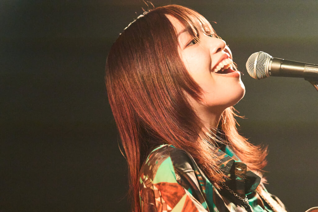 玉ねぎを切って涙をごまかしながら失恋の悲しみを乗り越えようとするバラード「オニオンスープ」ではまっすぐな愛情が伝わるクリーンな歌声を響かせ、内観的でありながらも空に羽ばたくような開放感を兼ね備えたカントリーテイストの楽曲「はじまりのうた」では心の痛みに光を当てるように丁寧に歌い上げる。するとクリスマスソングに一石を投じるアイロニカルな歌詞と展開の多いアレンジの「ブラックサンタクロース」で会場を沸かし、等身大の心境をセンチメンタルなメロディと軽やかなビートに乗せた「線」で観客の心を揺さぶった。バラエティに富んだ楽曲に共通するのは、彼女が傷み、悲しみ、怒りといった感情にしっかりと向き合っているということだ。それらを大切に抱きしめながら微かな希望を信じて前へと進んでいく姿は、繊細なガラスが光を蓄えて七色の輝きを放つ様子にも似ていた。