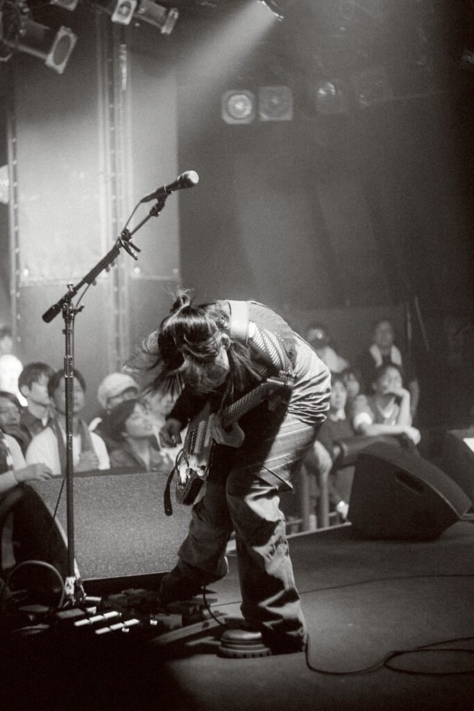 幻想的なSE「Oats We Sow」が流れ、大きな拍手に迎い入れられる片桐(Vo, G)とヤスカワアル(B)。緊張感に包まれる中、決意の表れように片桐が右手で胸を叩き、始まりとして「しあわせ」を鳴らしていく。透明感のある歌とドリーミーな雰囲気が漂い、《生き延びて生き延びて/生き延びている》という印象的なフレーズが響く中、一気に覚醒するサウンド。片桐の叫ぶように歌い、上がるボルテージにヤスカワも連動。とてもドラマティックで惹きつける導入だ。