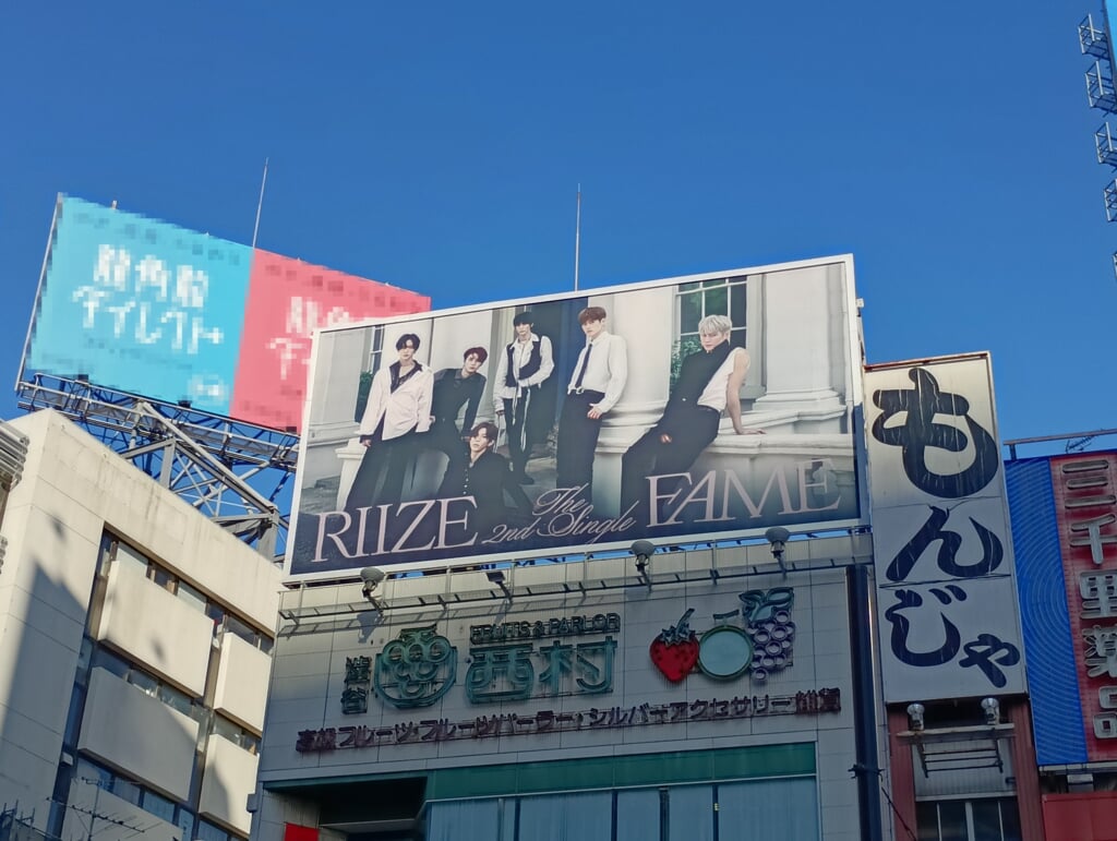 また、交差点の向かい側MAGNET by SHIBUYA109、SHIBUYA TSUTAYA、渋谷西村總本店(西村)ビル上部には12月19日に日本発売(配信中)されるRIIZE The 2ndシングル「Fame」のシックなメンバービジュアルが大きく掲出されている。そして渋谷センター街へ進むと新曲「Fame」がBGMとして流れており、渋谷のどこもかしこもRIIZEでジャックされている状況だ。