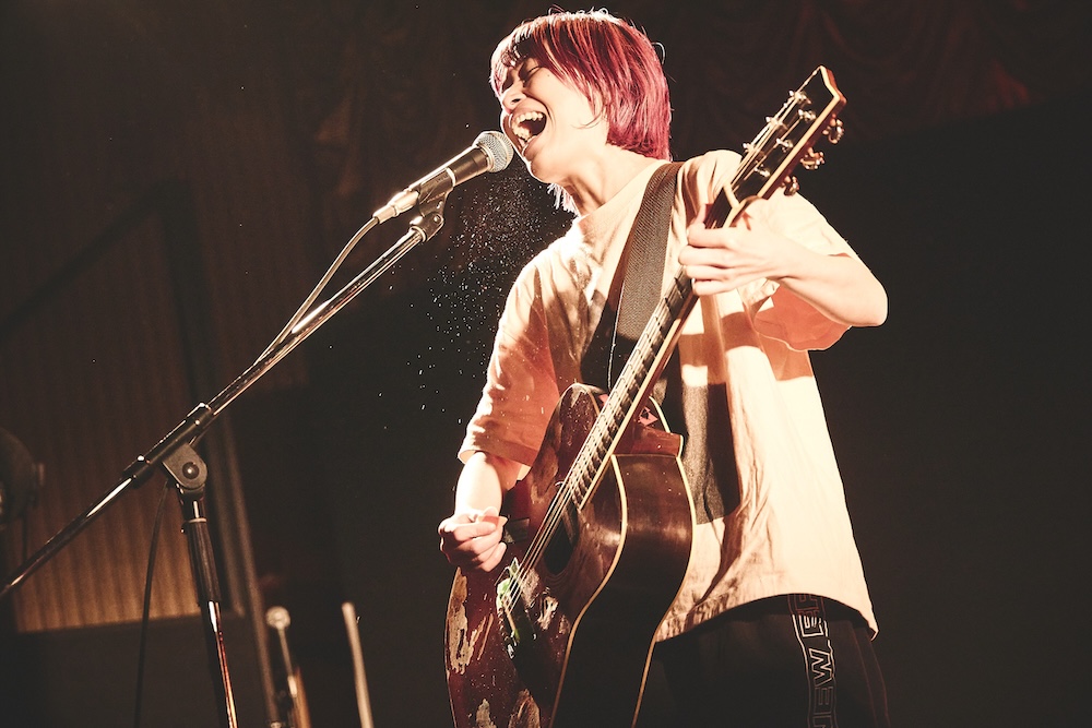 これまでのライブですでに披露されている「ゆれる6弦」、「ブルース」、そして、“泥水、飲み干す”というフレーズが印象的な「イッキ」を連続でパフォーマンスすると会場からは大きな拍手が起こった。