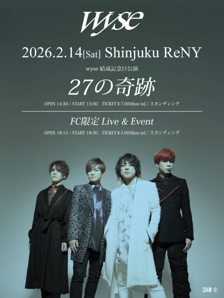 「音源も届けていきたいけど、やっぱりライブしたいよね。ライブバンドでありたい。生きてる実感を感じるから。これからも、特に来年はライブをどんどんやっていきたいと思っています。みんなのひとつのピースが必要なので、一緒に道を作ってほしいと思います。2026年2月14日にはwyseの誕生日会(結成記念日公演<27の奇跡>)がありますので、ぜひ参加してください! そのライブは期間とか時代の縛りじゃないので、ベストなライブになると思います」」──TAKUMA