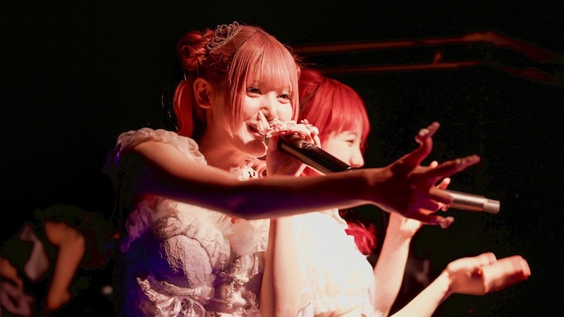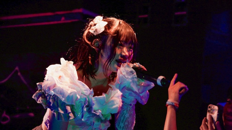 アンコールは、フロア中の人たちと一緒に、酩酊する勢いではしゃごうと「完敗乾杯」を歌っていた。ステージの上で、乾杯のポーズを取りながら《乾杯しようよ》と歌う彼女たちと一緒になって熱狂の乾杯を交わそうと、フロア中の人たちが両隣の人たちと肩を組んで《Oi!Oi!》と叫び、跳ね続けていた。この、ぐちゃぐちゃ感が最高だ。重い気持ちを吐きだすのもanewなら、無邪気な乙女になって明るく歌い飛ばすのもanew。この日は3周年公演ということもあって、「anewに」「乾杯」という熱いやりとりも生まれていた。この曲の間中、メンバーはもちろん、フロア中の人たちがテキーラを煽ったときのような勢いで陽気に祭り上がっていた。
