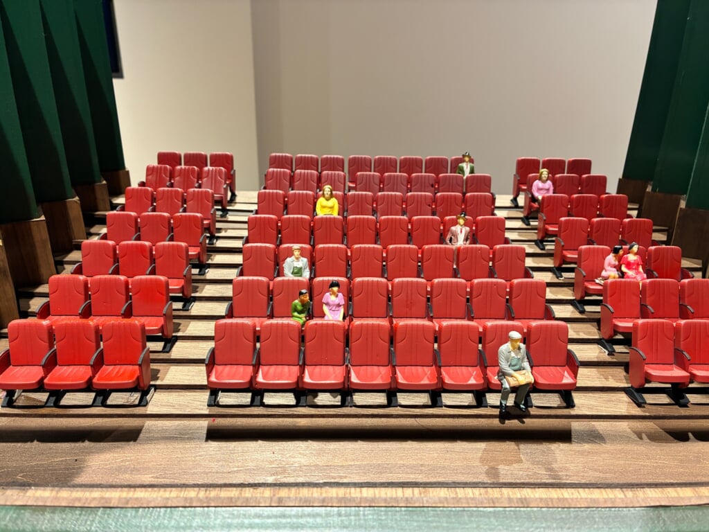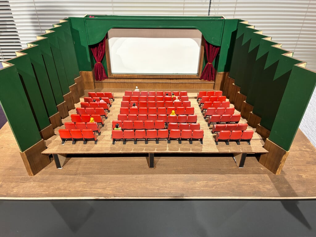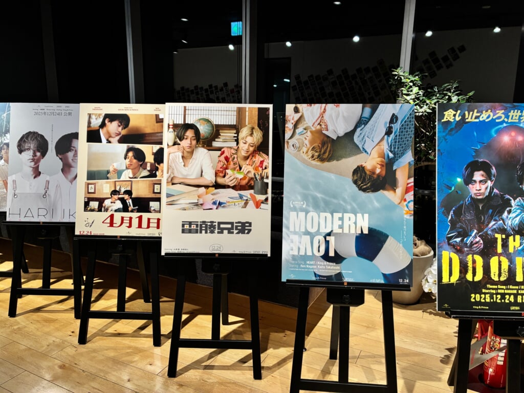 ユニバーサルミュージックのスタッフによると、King & Princeの音楽作品における視聴会の開催は今回が初とのこと。会場へと続く通路には、「Theater」のMVで使用された衣裳やミニチュアの“シアター”、11枚の“映画”ポスターが展示され、入場前から高揚感を演出していた。ポスターは本物の映画館に掲示されていても違和感のない完成度で、1枚ずつ足を止めて見入る記者の姿も多く見られた。