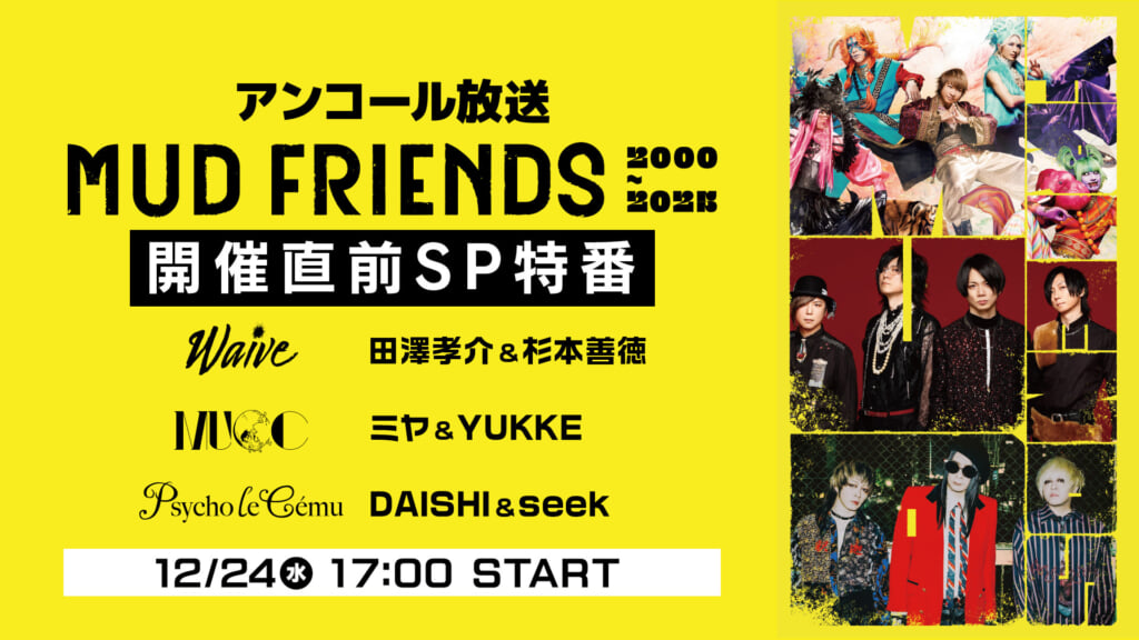 ■アンコール放送『MUD FRIENDS 2000~2025 開催直前SP特番【Psycho le Cému(DAISHI&seek)×Waive(田澤孝介&杉本善徳)×MUCC(ミヤ&YUKKE)】』