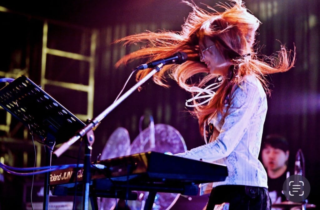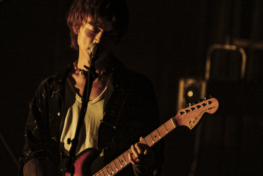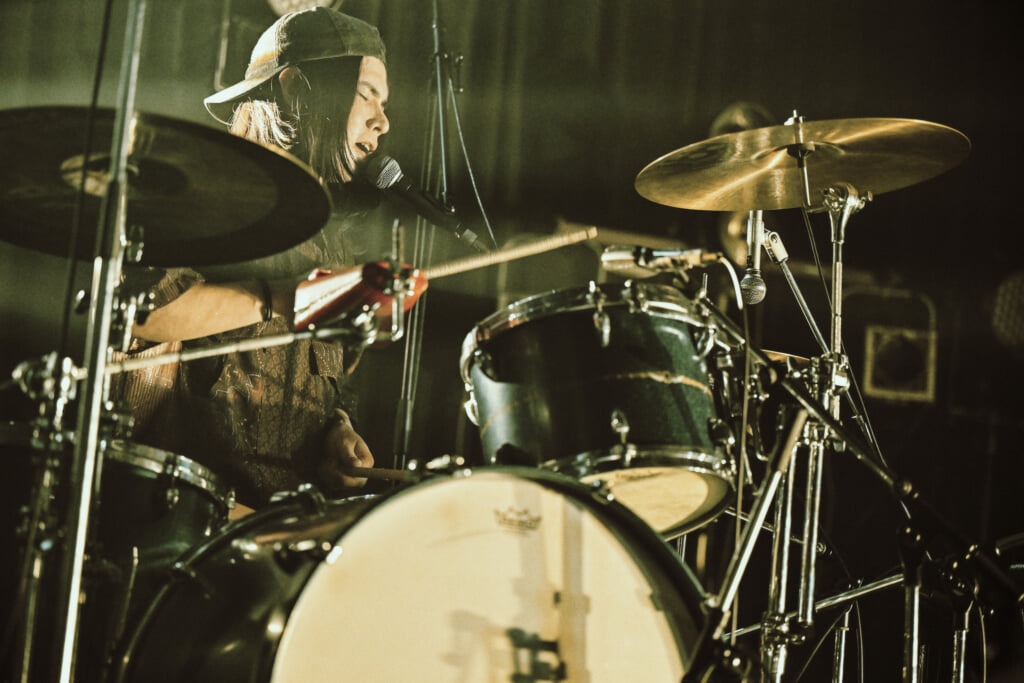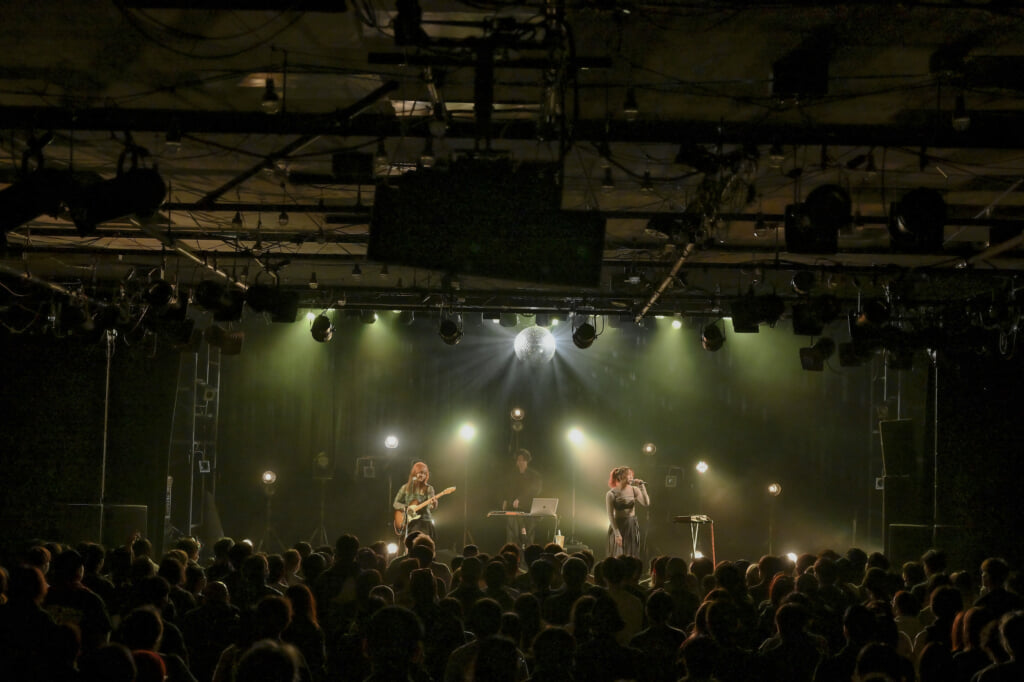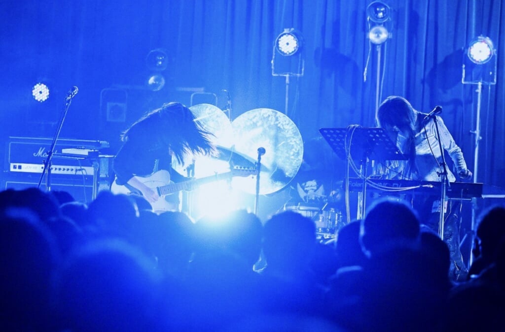 一軒家の輪郭をなぞるように配されたライトがふわりと光る中、「ホワイト・リバー・ジャンクション」でiVyのアクトが幕を上げた。タフで存在感を放つようになったfuki(G, Vo)の歌声は即座に会場へ染み渡っていくのだが、やはりiVyをiVyたらしめているのは、吐き出したロングトーンをひと息で回収するみたいな唱法や数行のポエトリーリーディングを筆頭とする、悲劇をその声に抱え込んだ歌唱なのだろう。そして、そんなボーカリゼーションは“君の声も指も嘘も足も歌も いらない”なんてリリックと連動しながら、今にも終わってしまいそうな世紀末を描き出していくのだ。