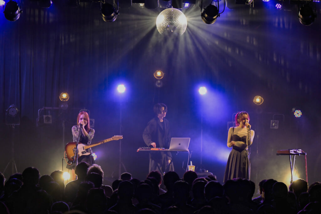 オープニングアクトとして登場したのは、2020年7月に結成された2人組ユニット・Rons week。開幕の号砲として鳴らされた「Buddy」から、アンニュイな質感を携えたHonamiの歌唱と、ミドルハイの親しみやすさが特徴的なMasamiの歌声が共鳴し合っていく。