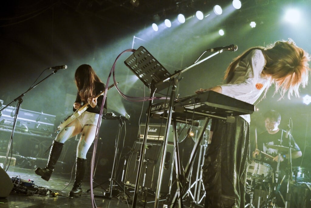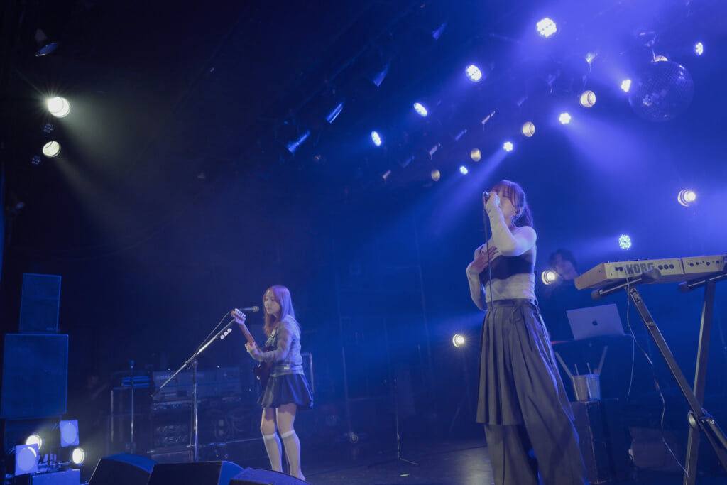 であるならば、バグさながらにウォンウォンとハウリングが唸ったのち、クラシカルなメロディが流れた「any n○ise」や、エンディングを彩った「kirakirakiller」は、そんな世界で踊り明かすpupu(Key, Vo)とfukiの姿を表しているよう。共依存的な関係に脳内でアラートを鳴らし続けたり、脱意味的な歌詞世界で“今日は NEONしたい!”と明朗快活に伝えてみたりする2人は、我々に“ねぇ遊ぼうよ”と問いかけるようだった。