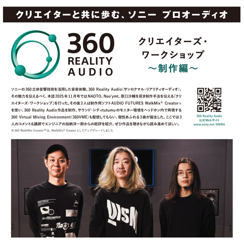 「fish」はソニーの360立体音響技術を活用した360 Reality Audio (サンロクマル・リアリティオーディオ)に対応した新作だ。サウンド&レコーディング・マガジンと360 Reality Audioによる特別ワークショップで制作された本作は、立体音響表現に特化したもの。音が自由に空間を泳ぎ回るように球状のフィールドへ配置され、360度の包囲感とリアルな奥行きが際立つなど、従来のステレオでは体験できないサウンドを実現している。