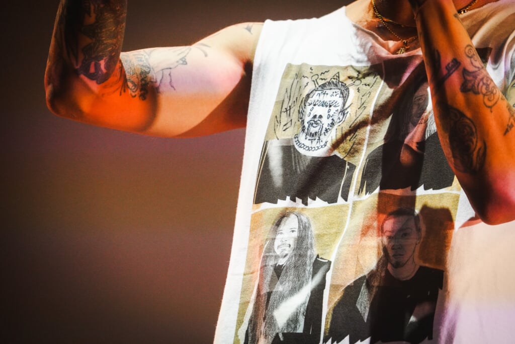 続くDIR EN GREYも、ディープな映像や歌詞を映し出すLEDを活かしたパフォーマンスを展開。しかし1曲目「人間を被る」で“何が正しいとかどうでもいい” “誰の為に生きる?”というフレーズを聴いたときに、バラバラすぎる流れに一筋の糸が見えた気がした。周りがどうとかじゃなく、自分自身で生きろということだ、と。そしてあっという間に、白塗りメイクの京のハイトーンからデスボイスまで変幻自在な歌唱と、演奏陣の迫力ある佇まいや圧倒的な演奏力で会場を制圧。さらにDieのアコギも美しく響いた「空谷の跫音」の静と動の極端な振れ幅など、意外とBRAHMANに通じるものもあると感じたオーディエンスもいたのではないだろうか(なおBRAHMANにも「空谷の跫音」という同名曲がある)。