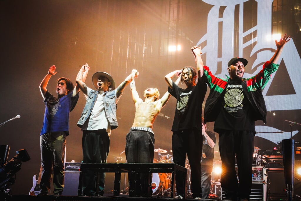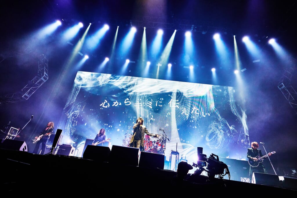 そしてRYUICHIは、こう言った。「今夜、本物のロックバンドになれているかな?」と。異端児のまま音楽シーンのてっぺんに登り詰めた彼らだけれど、結成35年を超えた今、やっと“本物のロックバンド”として満場一致で受け入れられたのかもしれない。「かかってこい!」「飛ばしていくぞ!」は元来のRYUICHI節だが、純粋に焚き付けられたライブキッズは、ダイブにモッシュにエキサイト。さらには鬼のヒット曲攻めでシンガロングに次ぐシンガロング。この盛り上がりに、そもそもパンクでラウドなロックも大好きなメンバーたちは本当にうれしそうだった。