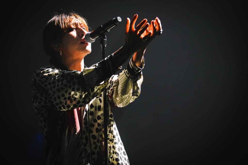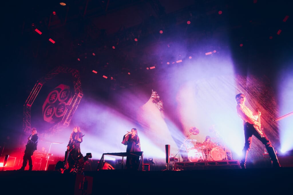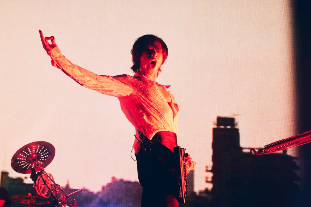 冒頭に書いた“世界観が濃いバンド”という表現は、“いつでもどこでも、ワンマンみたいなライブをやるバンド”と言い換えることもできると思う。それをやってくれたのが、結成40年(!!)を誇るBUCK∞TICK。現在ツアー中ということもあってか、精密な映像も含めて、あっという間に<尽未来祭>をBUCK∞TICKワールドに染め上げた。