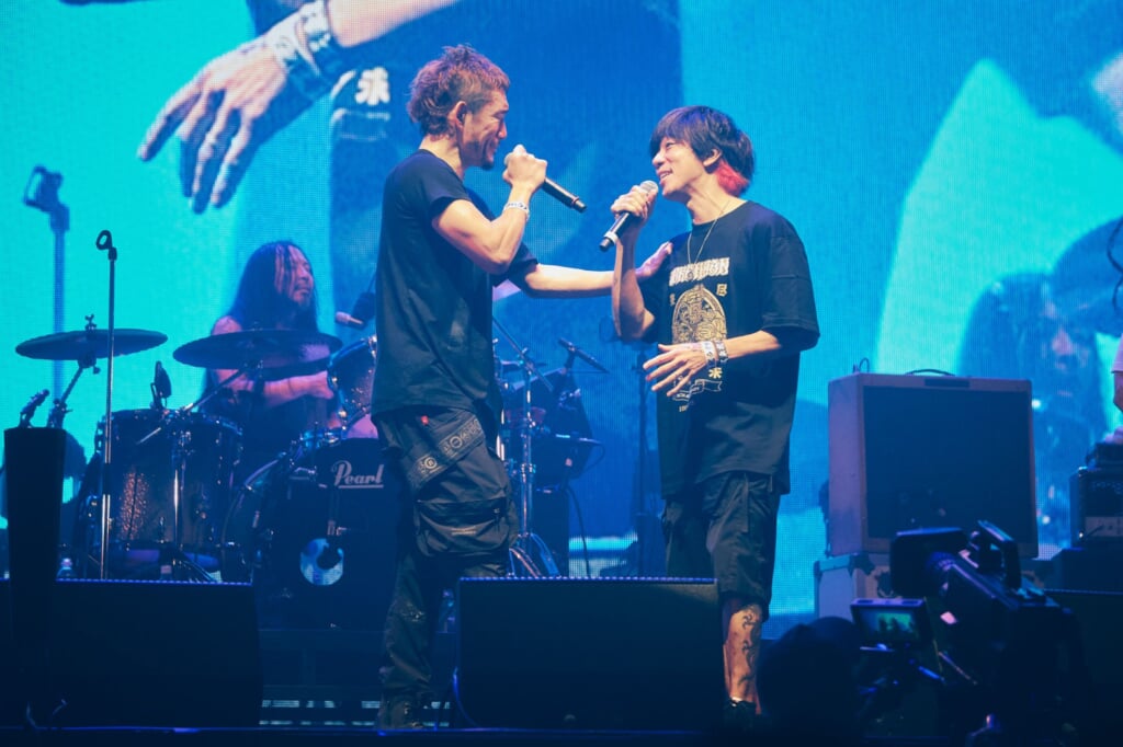 そして次は、やはり東日本大震災以降、深く共鳴し合う関係性となったELLEGARDENの細美が現れ「今夜」「WASTE」を一緒に歌う。