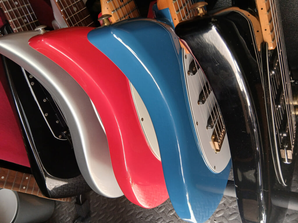ピックガードも改めて作成していただいたりして、本体よりも高い金額を支払いました。それでも大変満足のできる色の仕上がりで、先日のライブから導入しています。