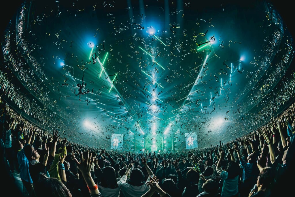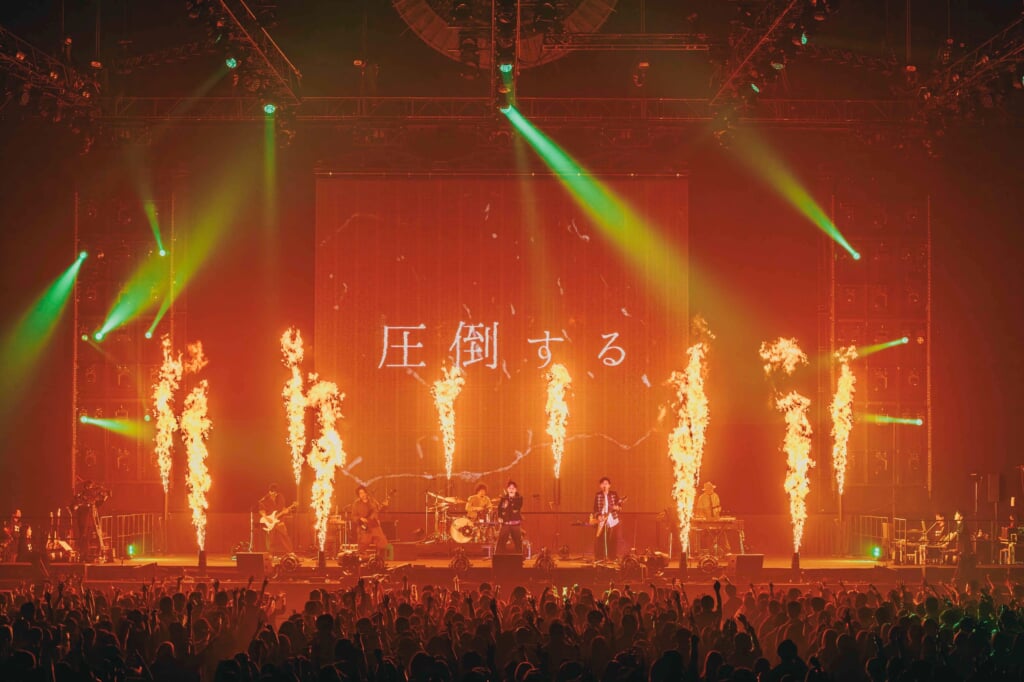 落ち着いたピアノフレーズで始まるイントロからだんだんと熱が宿り壮大に展開するメロディは、まさに革命と言うに相応しく、サビの“神聖なMOVE SILENT VOICE THE DAY HAS COME”での大合唱では、メンバーとファンとの絆を感じられるほどでこの日のためにつくられたかのように、楽曲の持つ力強さが最大限に引き出されていた。アウトロにさらにピアノイントロが復活し、楽曲としての反転を覚えるような<THE OVEЯ>オリジナルアレンジには、この日だけの特別な歌詞が乗り、改めて2026年を大団円で迎えた喜びをライヴに参加した全ての人が分かち合えたに違いない。気づけばステージから、メンバーそして観客を大きな光が包み込み、今年の行く先を指し示すかのように照らされた光景は、2016年のライヴ<THE WAY>から続く道を今回のライヴで答え合わせするかのようで、圧巻の一言に尽きる。