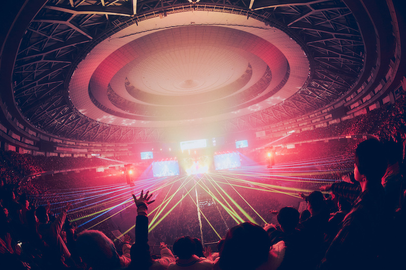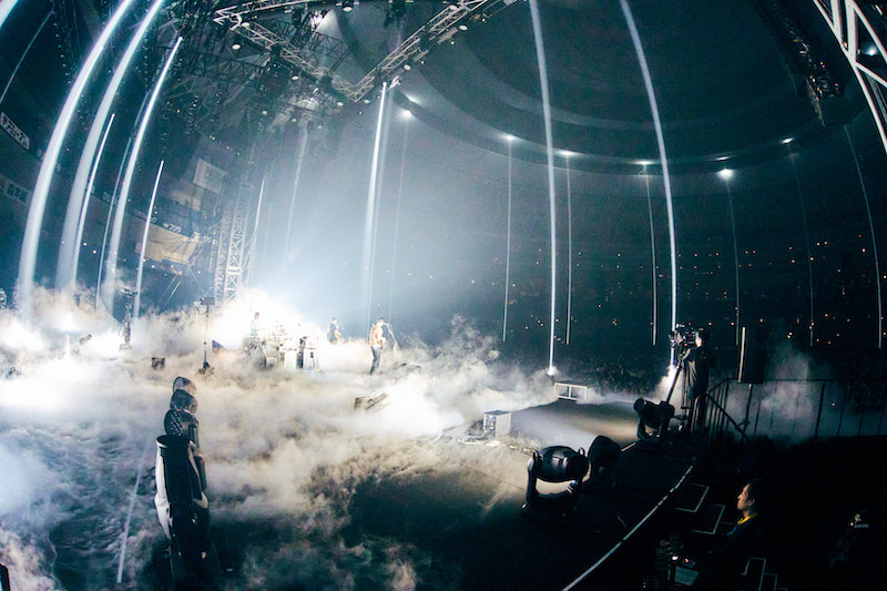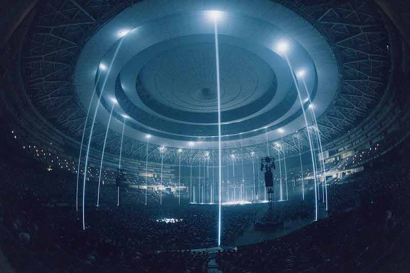 そしてライブは後半戦へ。スクリーンに東京の街の風景や人々の日常を捉えた映像が流れた後で暗転し、暗がりの中で静かに始まったのは「東京」。天井からフロアに向かって垂直に伸びる無数の光の柱が、ドームの圧倒的な広さを視覚的に強調している。その光の檻のような空間の中で歌われる「東京」では、歌詞に滲む孤独感や覚悟のようなものが心の奥深くまでダイレクトに突き刺さってきた。