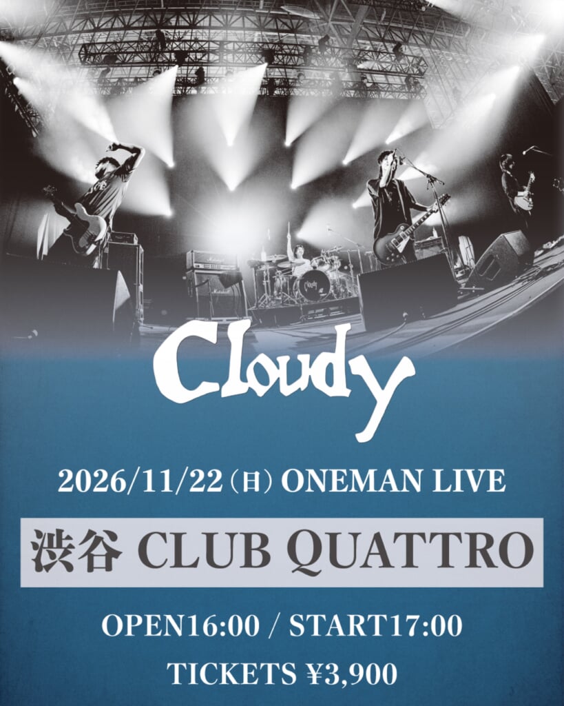 さらに、11月22日に渋谷CLUB QUATTROでワンマンライブを開催することもあわせて発表された。新体制での楽曲群を携え、バンドとして次なるステージへと進む重要な一夜となりそうだ。Cloudyは4月に自身初の主催サーキット開催も決定している。
