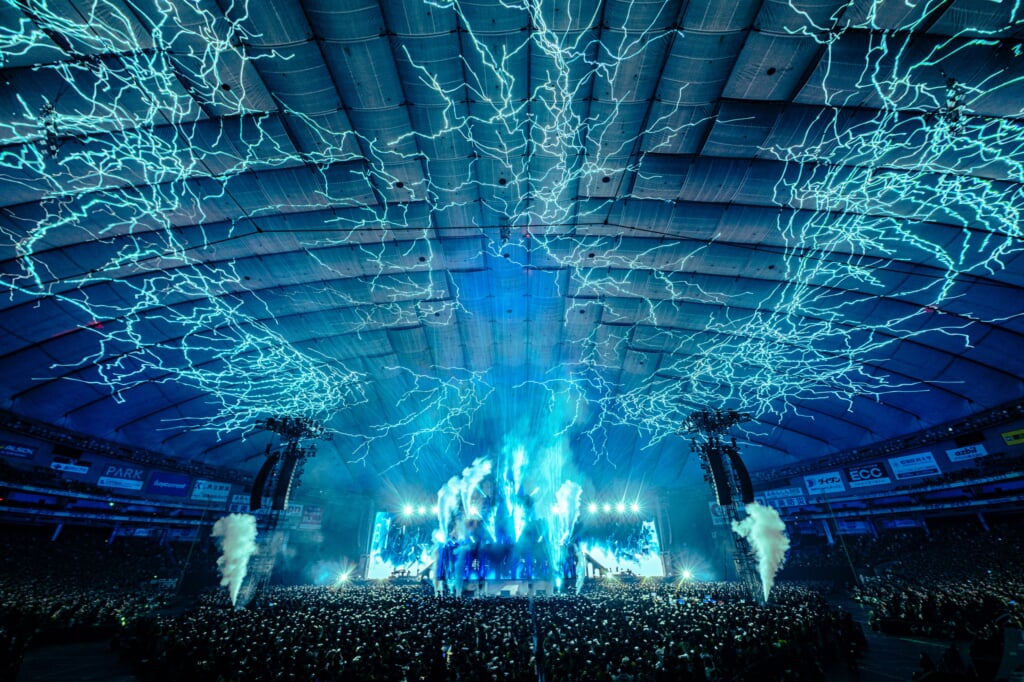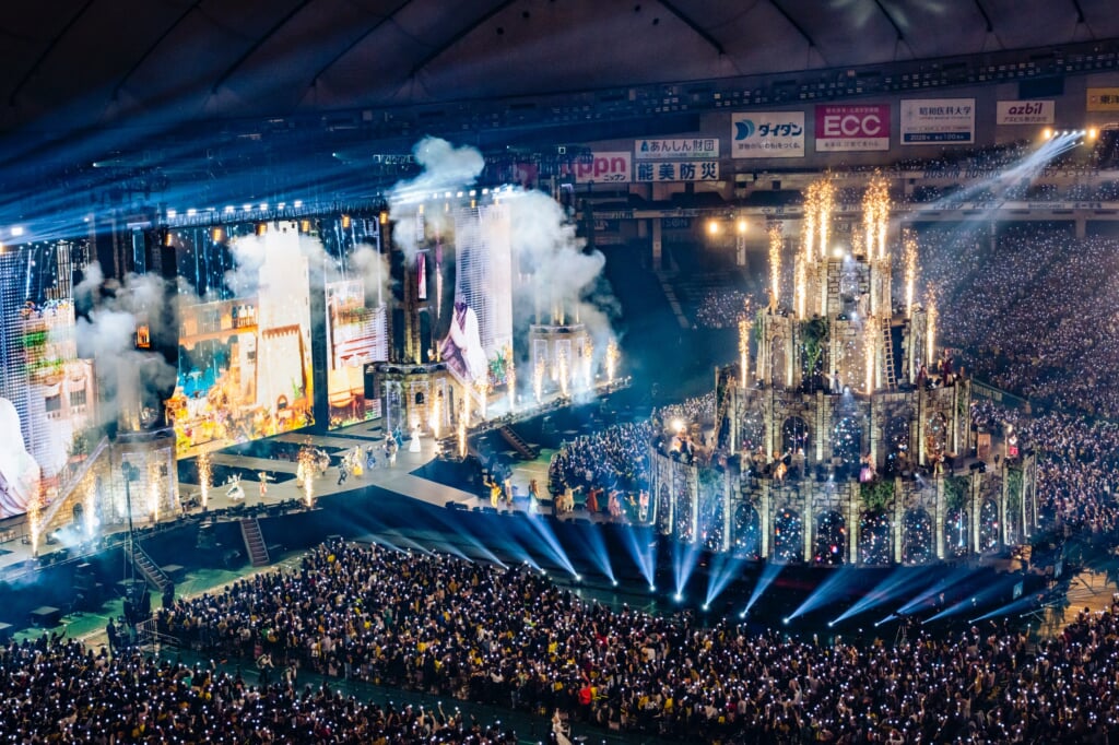 その物語は、東京ドームの外から始まっていた。グッズショップやフォトスポットなどが設置されていた会場周辺には、アンビエントなBGMが流れていた。一般的なライブだと、アーティストの代表曲がそのまま流されることが多いが、オリジナルのBGMもライブの雰囲気作りにひと役買っていた。しかもそのBGMは、開演を待つドーム内でも流れており、コンサート会場の内側と外側が別世界のように壁を作らないよう、実に考え抜かれた演出で観客をもてなしてくれていた (なお、こうしたオリジナルのBGMは、終演後の東京ドーム内外でも流されていた)。