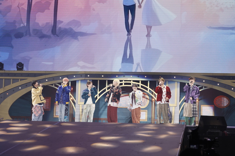 2月に発売となる新曲「ハニカミ」を伊野尾がカウコンの失敗を継いで(!?)カミカミで曲紹介し、ライブが再スタート。手を握り猫ポーズのようなキュートでついマネしてみたくなる振付を披露。「つなぐ手と手」では優しい歌声を聴かせ、「シアティカ」では知念が高音を担い、7人でしっとりフォーメーションダンス。TikTokで振り付け動画も出ている「メロリ」ではかわいい振り付けをメンバーが一人ずつ踊るところがカメラに抜かれ、ファンをメロメロに。「劇的LOVE」では電飾のついた全長約9メートルの大きなユニコーンに乗って外周を回り、客席もペンライトを左右にフリフリして大盛り上がり。
