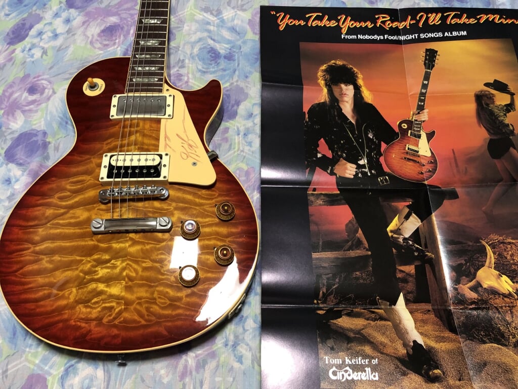すげえのきたな。トム・キーファーのレスポールってだけで顎がガタガタしますが、それ以前にもんの凄いキルトですね。ヒスコレが登場する前のリイシュー・ムーブメントの先駆け期なわけですが、そのエピソードといい歴史的背景といい、実際の作りといい、トップオブトップ…史上最強の一本であることは疑う余地もない。リアだけオープンというのも、オリジナルからなにかこだわりのピックアップに換装したことを表していそう。シンデレラのアルバムでこのギターサウンドが聴ける…のかな。(BARKS 烏丸哲也)