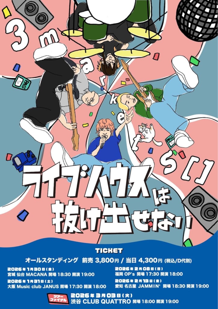 さらに、1月30日からはツアー<ライブハウスは抜け出せない>を開催する。EPタイトルやツアータイトルともリンクさせてなのか、ライブ当日は「脱出ゲーム」も楽しめるとのことだ。