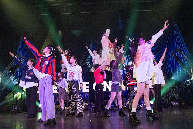 ライブは、華やかなファーコートを身にまとい男女ハーモニーとクールなダンスで魅せる「バグっちゃうね」でスタート。「Prime Numbers」「Glory Dayz」「本日ハ晴天ナリ」、BACK-ONのカヴァー楽曲「flyaway」で早くも会場は熱気に包まれた。続いて、雰囲気新たにデビュー1年目にリリースした楽曲を披露。さらに男女別楽曲を男女交換で披露するサプライズも。