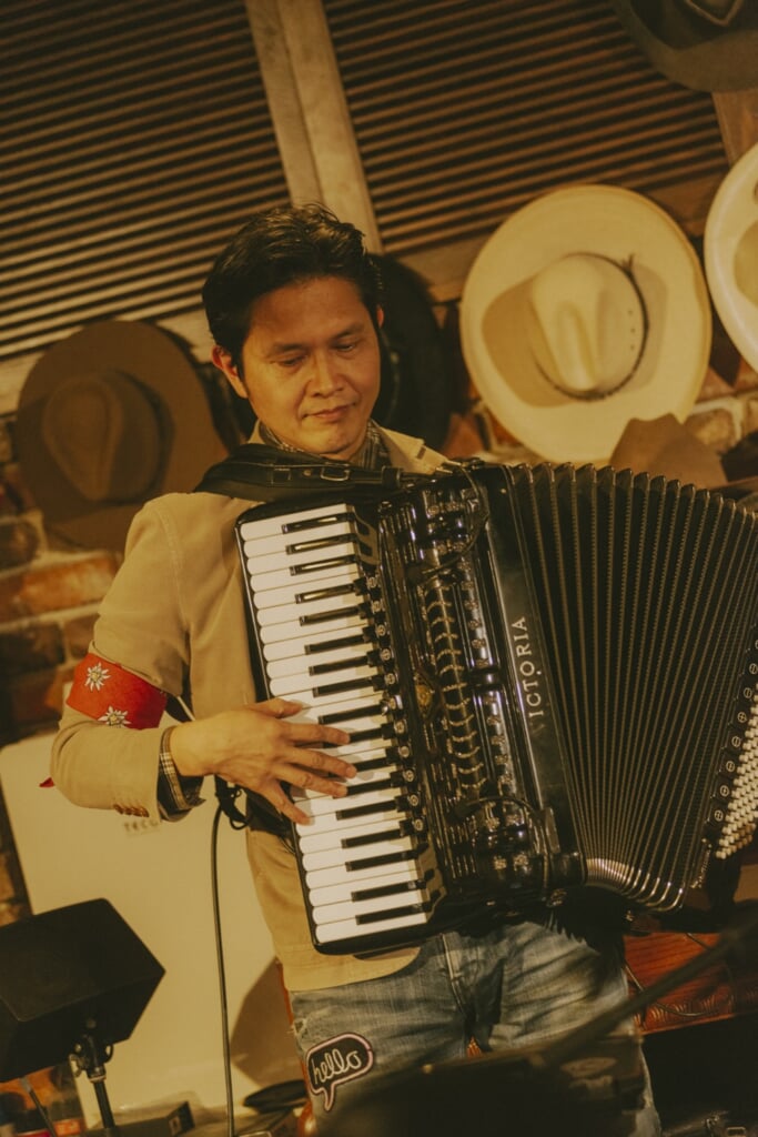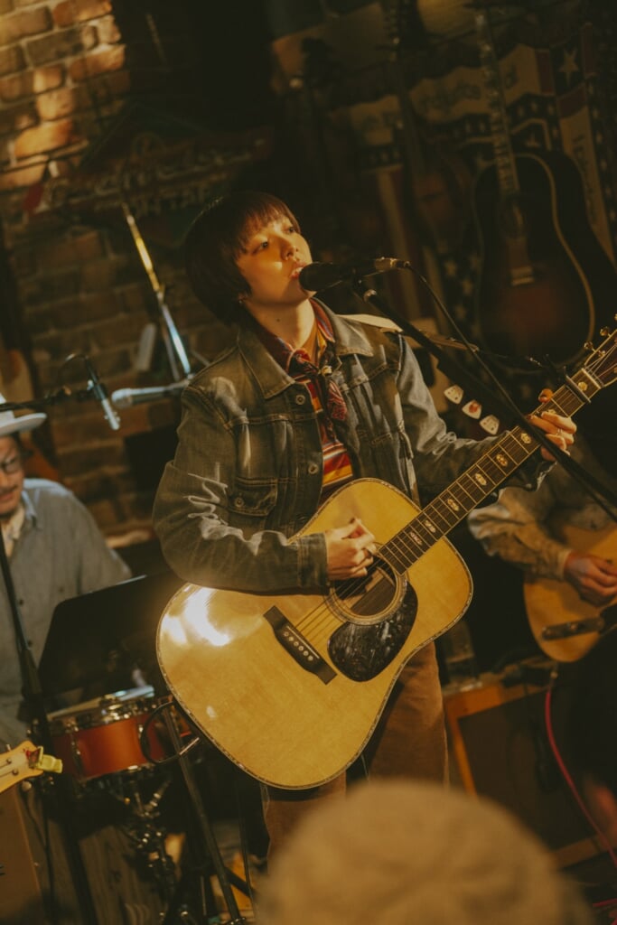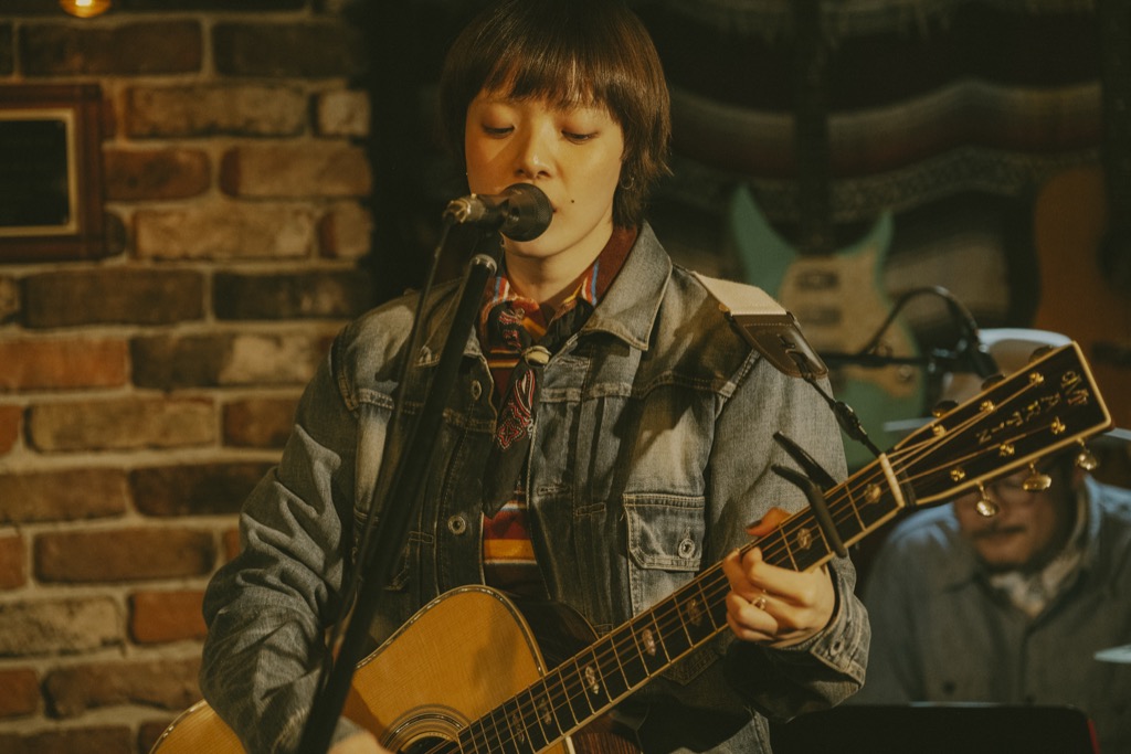 赤坂カントリーハウスは1976年にオープンした老舗のライブハウスで、長岡は20歳の頃から毎月このお店に出演し、ホームグラウンドと言っても過言ではない。そんな長岡と縁の深い場所に、あいみょんが「おじゃまします」というわけだ。レンガをあしらった店内はアットホームな雰囲気で、幸運にもチケットを購入できたのはお店の常連だという2名のみ。あとはメンバーの友人が招かれていて、Instagramの配信ではあいみょんの普段のサポートメンバーであるギターのqurosawaと、ドラムの伊吹文裕も客席に映り込み、SNSでは「あれクロちゃんとイブイブじゃない?」というファンのポストも見受けられた。
