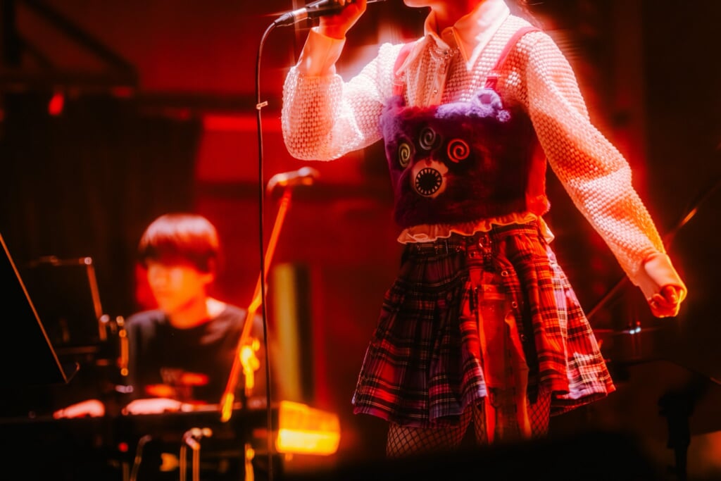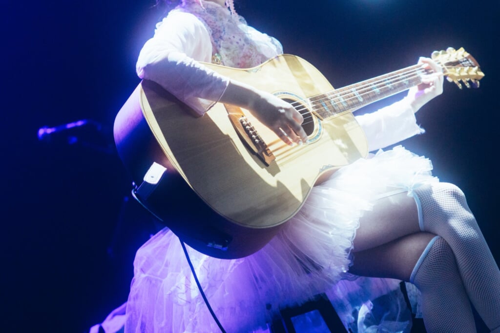 りりあ。の音世界が脳内再生されるかのようなオープニングSEが鳴り響いた後、本人がステージに登場。「ねえ、ちゃんと聞いてる?」のあたたかく柔らかな歌声でライブが幕を開けた。初めて目にするりりあ。の存在に客席からは抑えきれない歓声が湧き上がった。