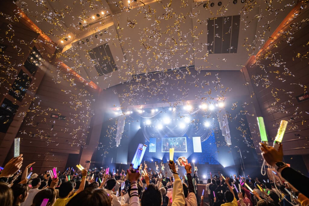 かれんが「これからもみんなのそばにいるからね」という言葉をイントロで添えた「きみと青空」では、キャノン砲で金&銀色のテープを発射。カラスクの代表曲のひとつで、ワンマンライブのラストを飾ることが多い「幸せの見つけ方」で、幸せな気持ちが一人一人の心に溢れたまま、2時間超のワンマンライブの幕を閉じた。
