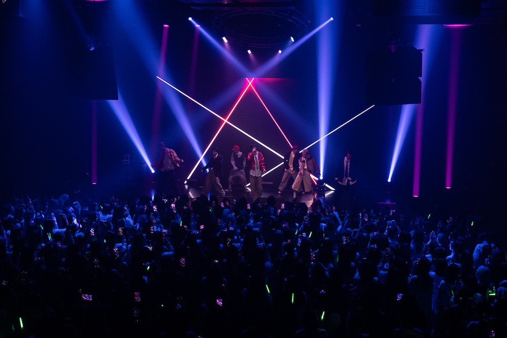 中盤では、ユニットやポジションごとのパフォーマンスを通して、メンバーそれぞれの進化にフォーカス。小波津志とWEESAによる「アシンメトリー」では、客席に花束を手渡すサプライズ演出も飛び出し、思わず黄色い歓声が上がる。続く「Dream Flight」は、小波津と渡邉廉による未リリース楽曲。デビュー当初はラップを担当していた渡邉が、今やボーカルの柱の一人として聴かせる甘く伸びやかな歌声と、小波津の透明感あるボーカルが重なり、美しいハーモニーを描き出した。