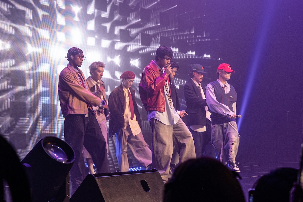 その後は中西椋雅によるDJタイムへ突入。フロアは一転してクラブさながらの空間となり、再び会場のボルテージを引き上げていく。その熱を引き継ぐように、ラッパー陣による「Psyfe Cypher」が披露され、半田龍臣がアグレッシブに観客を煽る。続く「Highlights」では渡邉によるビートボックスも飛び出すなど、スキルフルな一面を存分に見せつけた。その後はJIMMYとWEESAがビートに身を委ねながらステージを縦横無尽に駆け回る「Perfect feat. JIMMY & WEESA」、そして「SH♡TGUN feat. JIMMY, WEESA, ぺろぺろきゃんでー」を披露。自由度の高いパフォーマンスの中で、個々の才能の幅広さと、どの組み合わせでも最大限の相乗効果を生み出すPSYCHIC FEVERの“チーム力”を改めて印象づけるセクションとなった。
