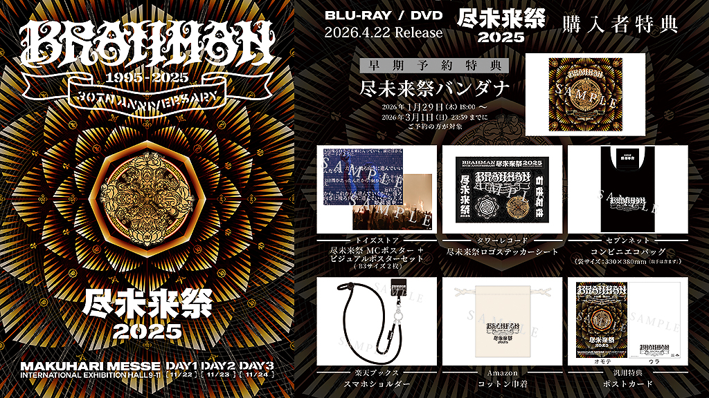 そして4月22日にリリースされるライブ映像作品『尽未来祭2025』は、3日間の全日程で大トリを果たしたBRAHMANのステージを余すことなく完全収録したもの。さらに、ボーナスディスクとして3日間のLIVE DIGEST CDと、尽未来祭の裏側に迫るドキュメンタリーも収録される。