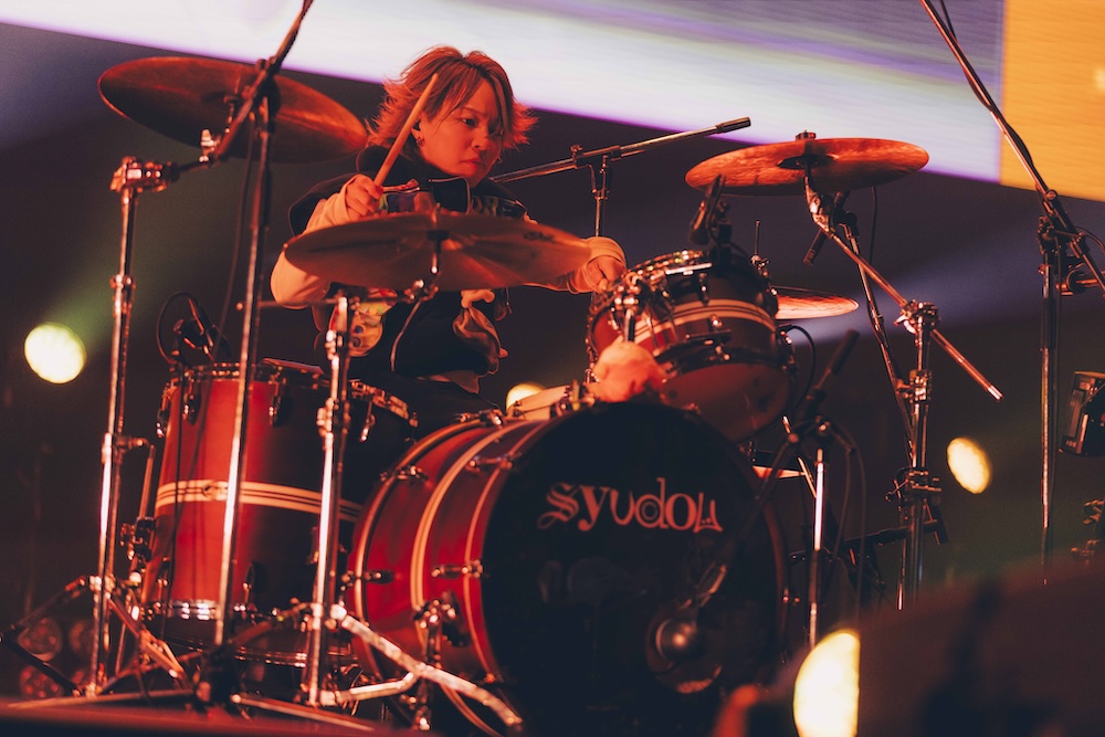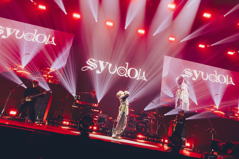 序盤のMCでsyudouは「僕を初めて観る人もいるんじゃないかと思います」と投げかけ、「初めて観る人?」と促すと会場のあちこちで手が上がる。改めて「モテるために音楽を始めた」という自身の原点を明かしつつ、親交の深い仲間が集ったイベントを形にしたことに「少なくとも僕の友達のアーティストからはモテ始めたんじゃないかと確信しています」と笑顔を見せる。そして表情を引き締めて「馴れ合いに来たわけじゃない。俺がここのトリをやるのに相応しいアーティストだっていうのを見せつけに来ました」と告げる。