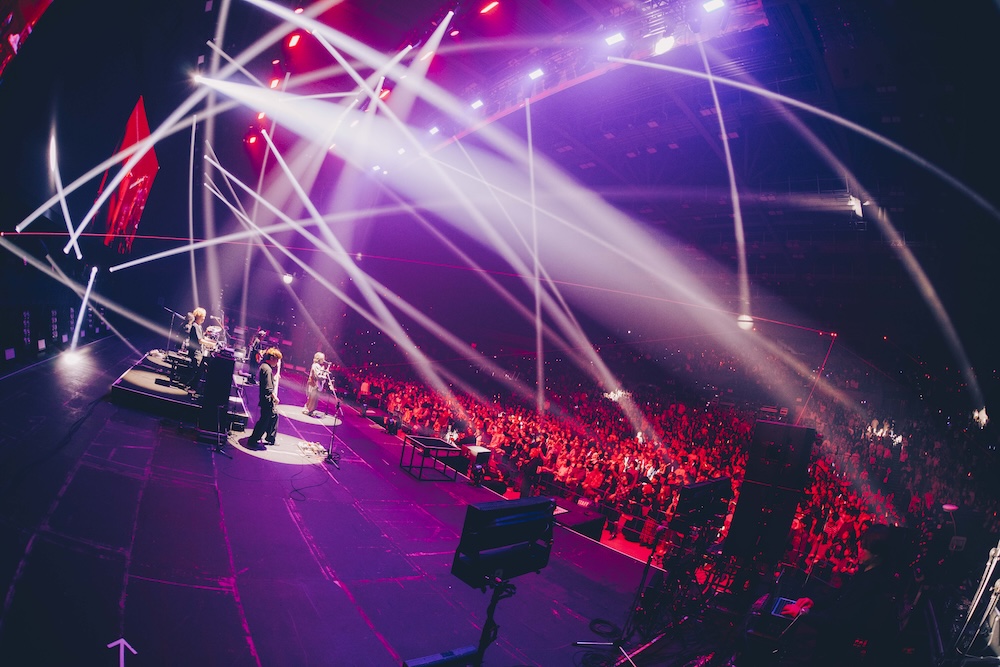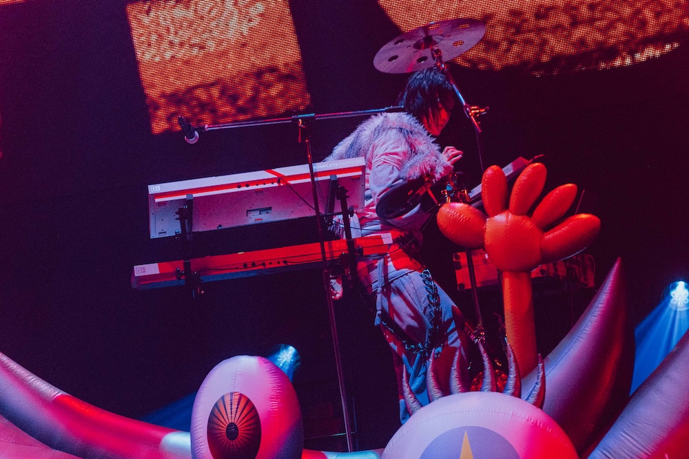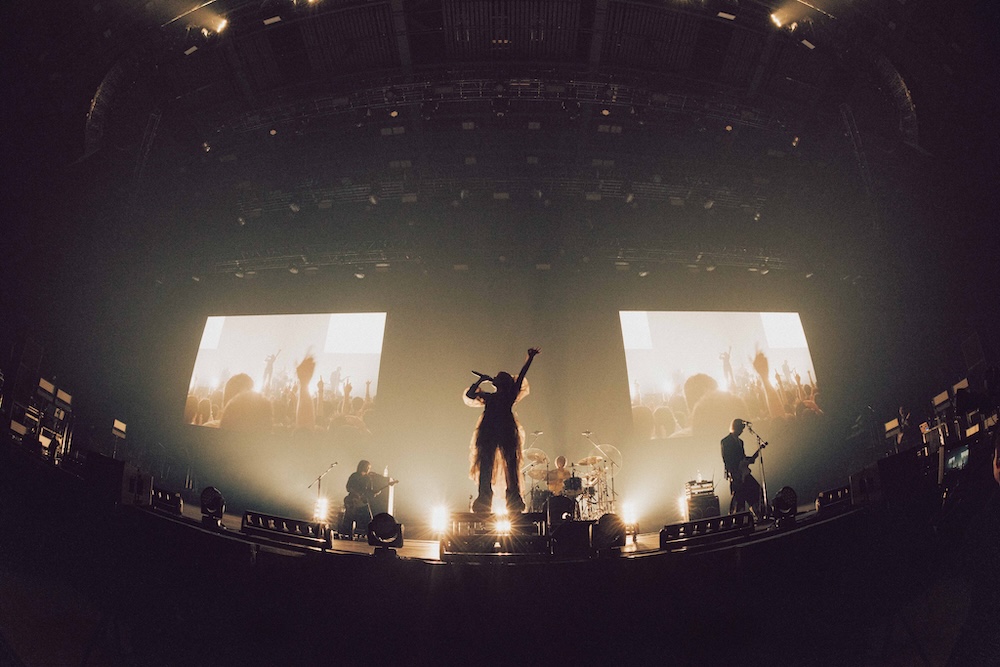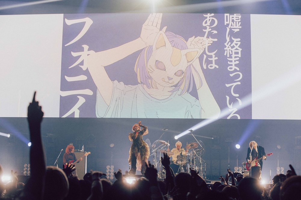ステージに巨大なオブジェが運び込まれ、バンドメンバーとともにikura、Ayaseが姿を現すと、会場のムードが一変した。