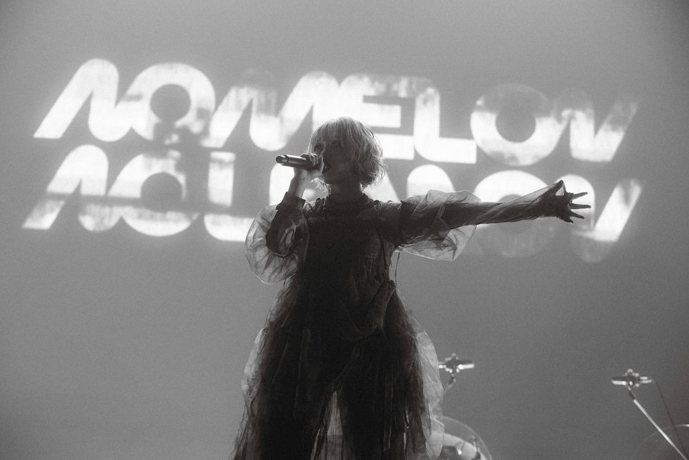 MCでツミキが「さっきも出てたからめちゃ恥ずかしい」と照れ笑いを見せると、会場は和やかな空気に。しかし「SUGAR」では一転、ツミキとみきまりあが共にギターを構え、向かい合って弾き鳴らす。二本のギターが重なる分厚いサウンドは情熱的で、ステージ上の迫力がフロアにも伝播する。そのセンチメンタルな余韻を残したまま、「みんな歌ってください」という言葉に導かれて始まったのは、ツミキの代表曲でもある「フォニイ」。NOMELON NOLEMONのバンド編成では初披露だ。中毒性の高いメロディにオーディエンスのシンガロングが広がった。
