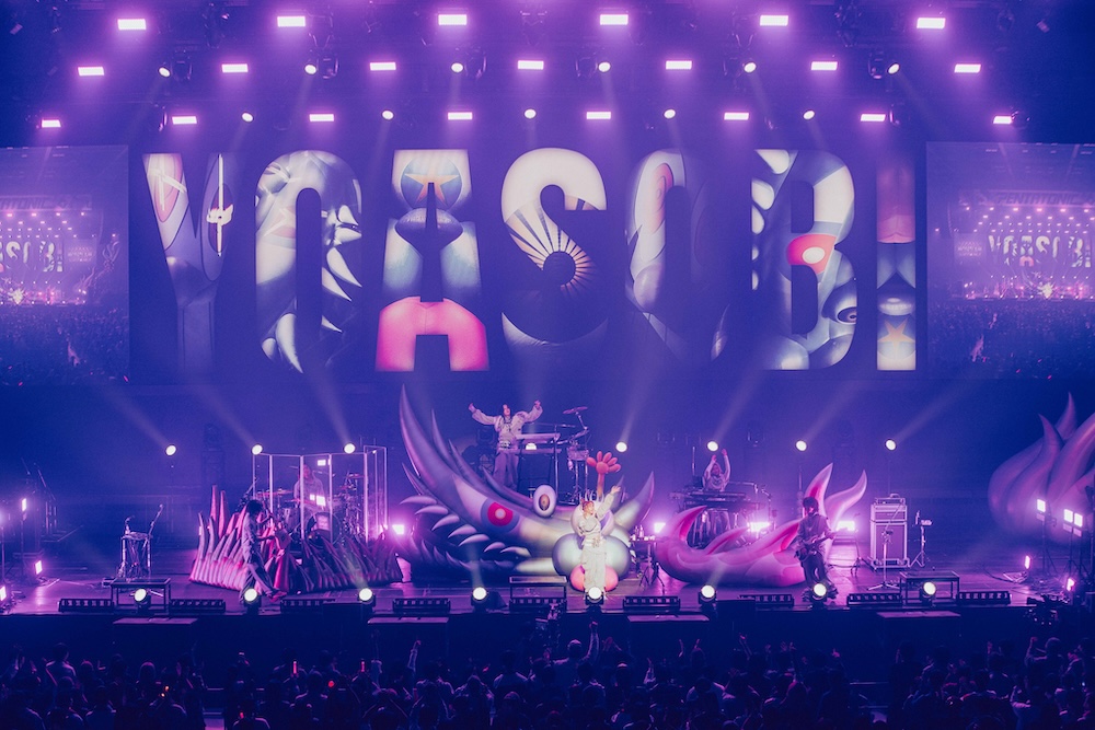 終盤は、この日がライブ初披露となるハイテンションな新曲「アドレナ」でさらなる熱狂を注ぎ込むと、バンドメンバーのソロ回しを経て「怪物」へ。YOASOBIのライブの強みである芯の太いバンドサウンドが炸裂する。 クライマックスは「群青」。会場中が声を重ねるシンガロングの絶景を作り出し、ラストは「夜に駆ける」。「飛び跳ねろ、横浜!」の掛け声にフロア全体がジャンプで応え、圧巻のステージは幕を閉じた。