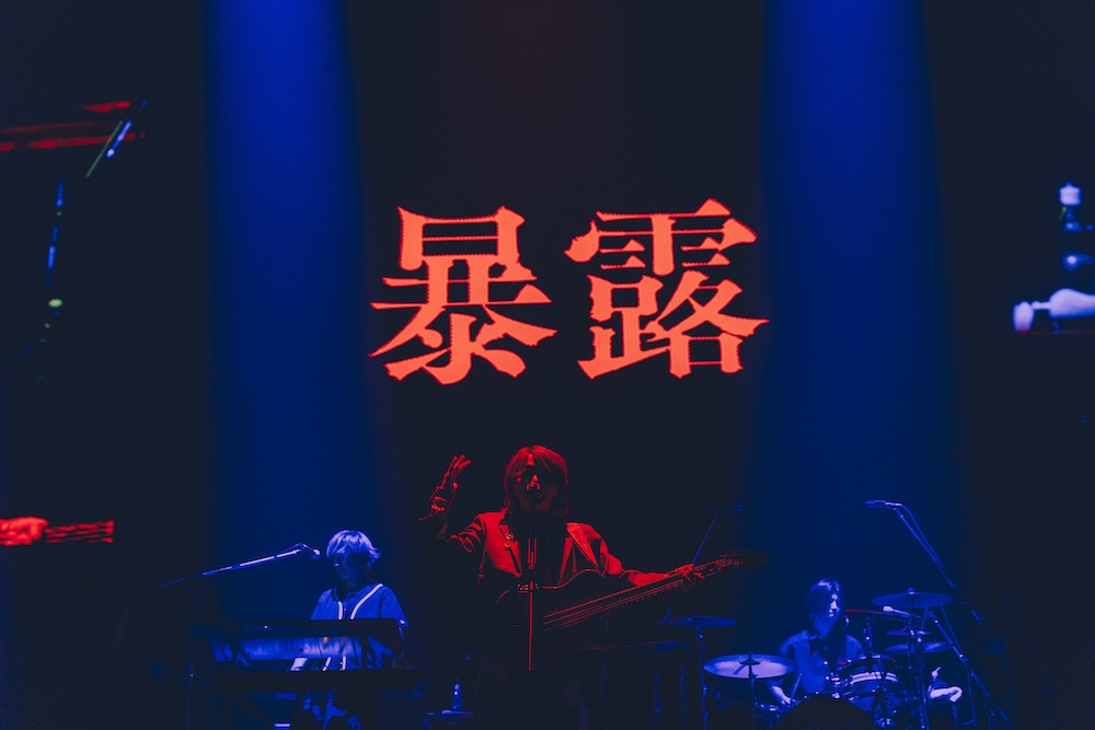 そんな決意と共に、この日初披露したのが新曲「暴露」。四つ打ちの強靭なリズムにラウドなギターとsyudouの鋭利なラップが交錯する攻撃的なナンバーだ。その後も勢いは止まらない。自らギターを掻き鳴らして始まった「あいきるゆぅ」では、レーザーが飛び交う中、バンド全体が塊となって放つパワーが、観客を圧倒する。