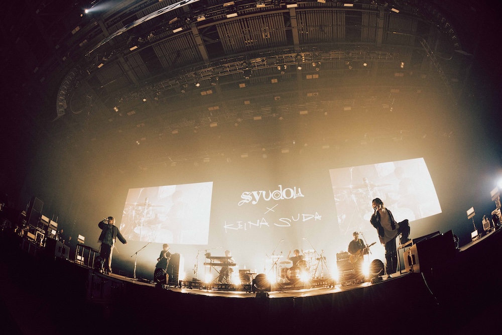 アンコールを求める大歓声の中、ステージにsyudouとともに現れたのは須田景凪。どよめきが起こる中、syudou × 須田景凪の「ペンタトニック」が披露された。二人の掛け合いからサビでは声を重ね、張りのあるsyudouの歌声としなやかな須田景凪の歌声が絡み合う。この夜限りのスペシャルなコラボレーションだった。