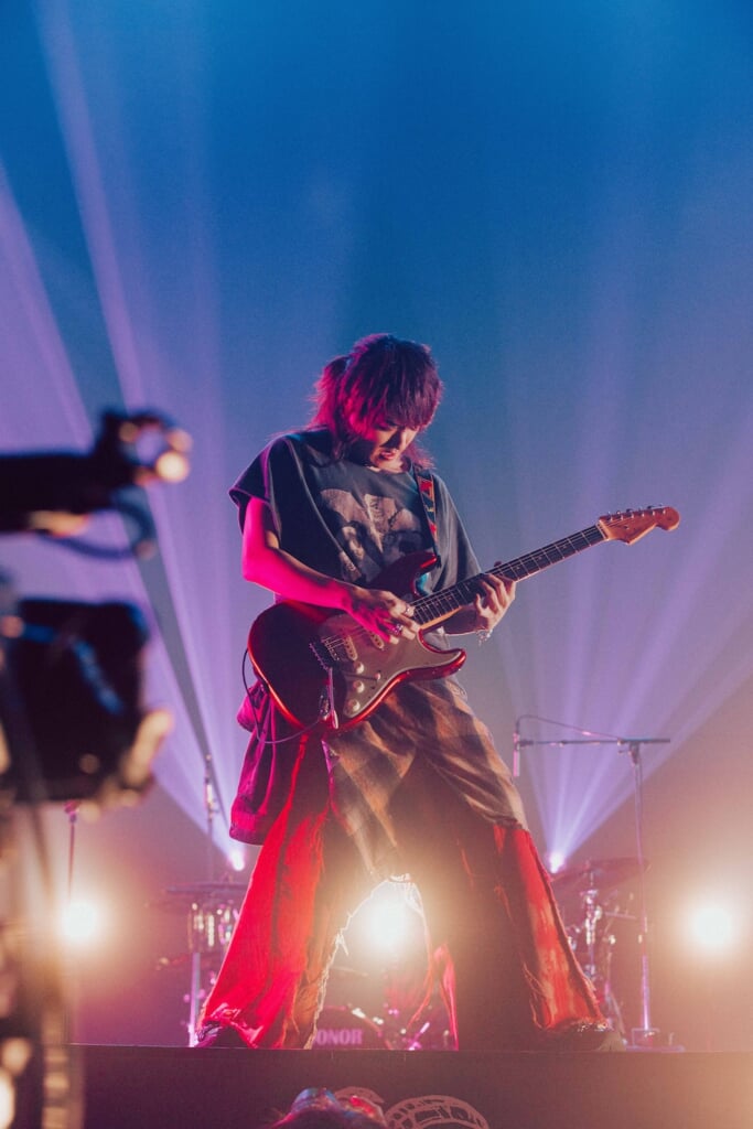 MCで石野はsyudouから楽屋に手紙が届いていたというエピソードも明かしつつ「リスペクトを込めて熱いライブをしていきたい」と意気込みを告げる。「Geeek」から「FLASH FORWARD」へと続く流れでは、YOASOBIなどのサポートのみならずソロアーティストとしても活躍するやまもとひかるの華やかかつ剛健なベースラインと、ツミキの野性的で手数の多いドラミングが絡み合い、強靭なグルーヴを生み出す。その熱量に乗せ、熱のこもったフレーズを次々と畳み掛ける「BAQN」へと駆け抜けていった。