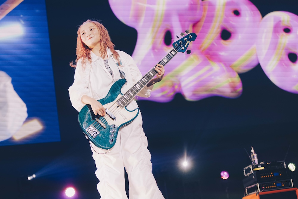 「みんな最後まで楽しんで!」という石野の声を合図に「CRAZZZY」でライブはスタート。目まぐるしい展開の楽曲を、中間部では4人が向かい合ってプレイするなど、ひとつの塊となったバンドアンサンブルで駆け抜ける。オーディエンスのハンドクラップが沸き起こった「サラダボウル」、石野のきらびやかな歌声が映える「魔法はスパイス」と、フロアの温度を着実に上げていく。