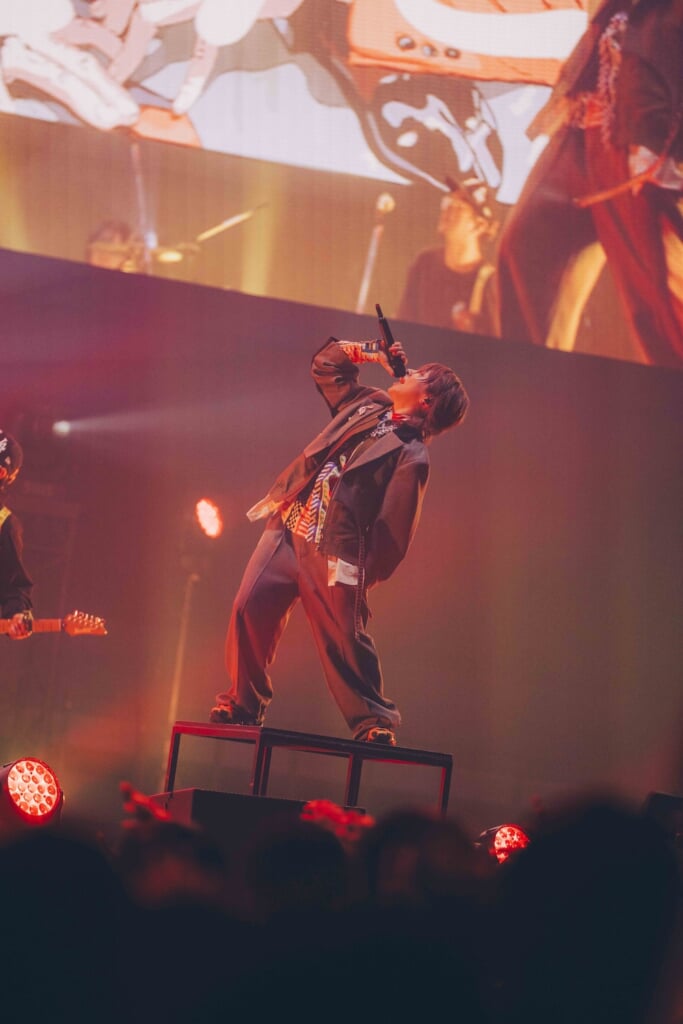 「希望の歌を歌います」と届けた「メロウ」では、サビのメロディをオーディエンスに委ね、会場全体が高揚感に満ちた温かい空気で包まれる。「ミーム」ではフックの強いフレーズの応酬で畳み掛け、さらに「ここで全部出しきっていこうぜ!」と「パレイドリア」へ。ハンドクラップが沸き起こり、フロアの興奮が加速する。「音楽のことを愛してますか? PENTATONICのこと愛してますか? そんなあなたへ最大級の愛を込めて」と披露した「ラストルック」では、力強い歌声が会場の隅々まで響き渡った。