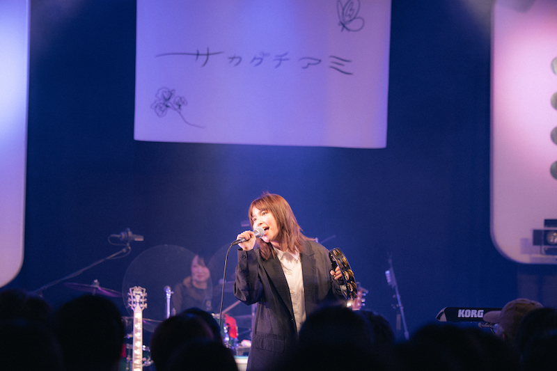 「カタカナになりましたサカグチアミです。最後まで全身全霊で歌っていきますし、終わるころにはカタカナのサカグチアミが、そしてあなたがあなた自身をちょっと好きになって帰ってもらえたら嬉しいです」