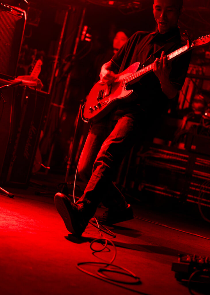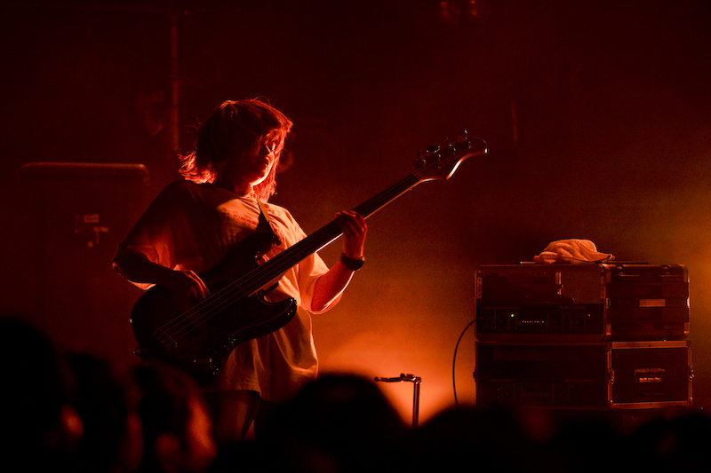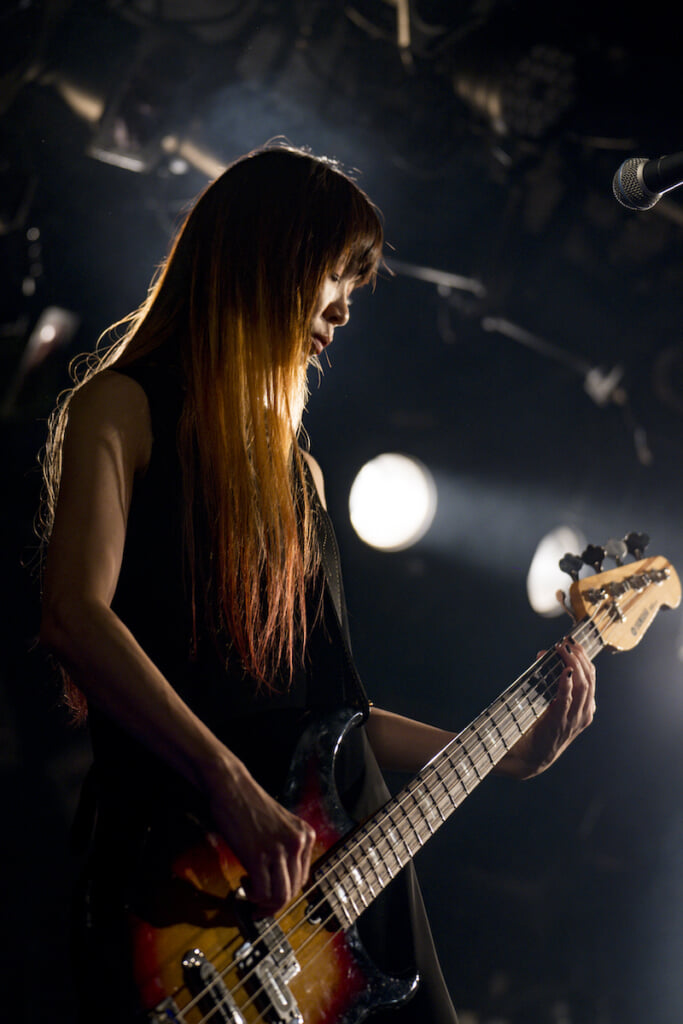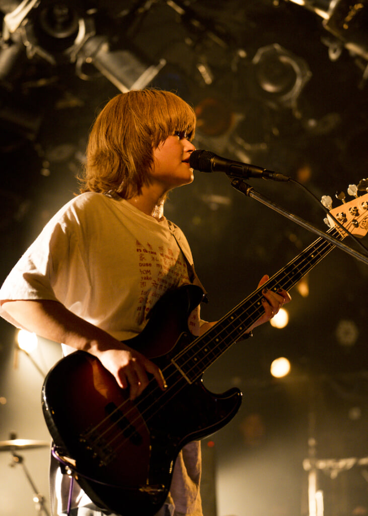 こうした説得力の増幅やa flood of circleとも重なる反骨心は、開幕を飾った「とぅ〜ばっど」から滲みまくっていたもの。呪術的な不気味さを孕んだマナミオーガキ(B, Cho)の歌声とズシンと沈んだギターが発破をかけ合い、止揚へと発展していくスリリングな演奏も、「(^。^)// ハイ」に見られた夕方色のライティングと共に夏のひぐらしを連れてきたファルセットも、よりタフに、より開放的に変身しているよう。さらに、「こんにちは、Nikoんです。ハッ!」と一言で目を覚まさせる彼女の相貌には、既にフロントマンとしての責任が宿っている。テクニックもメンタリティも凄まじい成長速度だ。『fragile Report』の取材にて、「バンドの中心メンバーがいた上での自分というよりも、自分がいてのNikoんですっていう気持ちに変わっていった」と話してくれた変化は、もはや目に見える形としてのみならず、Nikoんのストロングポイントとして機能していく。