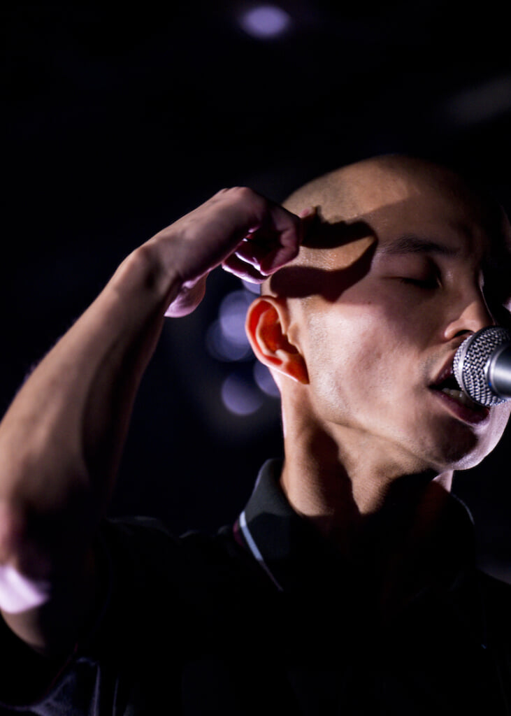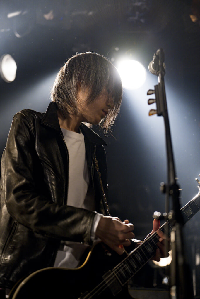 《俺とよく似た野良犬が2匹いる》とアレンジを加えたリリックでNikoんへの共感を暗示した「月に吠える」や、フロアに乱入し、マイクを指揮棒代わりに振り回した「理由なき反抗(The Rebel Age)」で、荒れ放題の孤独感が決して君だけのものじゃないと告げれば、ピリオドには「白状」を。《湯船に浸かると浮かんでくるのは つまらん昨日の嫌なわたし》と、徒労感に苛まれる様子をカメラに収めた「fragile report」とも通底するような、《もう疲れたんだ》なんて独白を歪なキーボードに乗せるこの曲。両の手で握ったギターと眼前のマイクの重みと向き合い、最後に《これが生きる理由だ》というマニュフェストをぶち込む彼らの背中は、愛も夢もバンドもロックンロールも続いていくのだと信じさせてくれるロマンで満ち満ちていた。ロックバンドを貫き通す先輩から贈られたその宣言は、Nikoんを勇気づけるものだったに違いない。