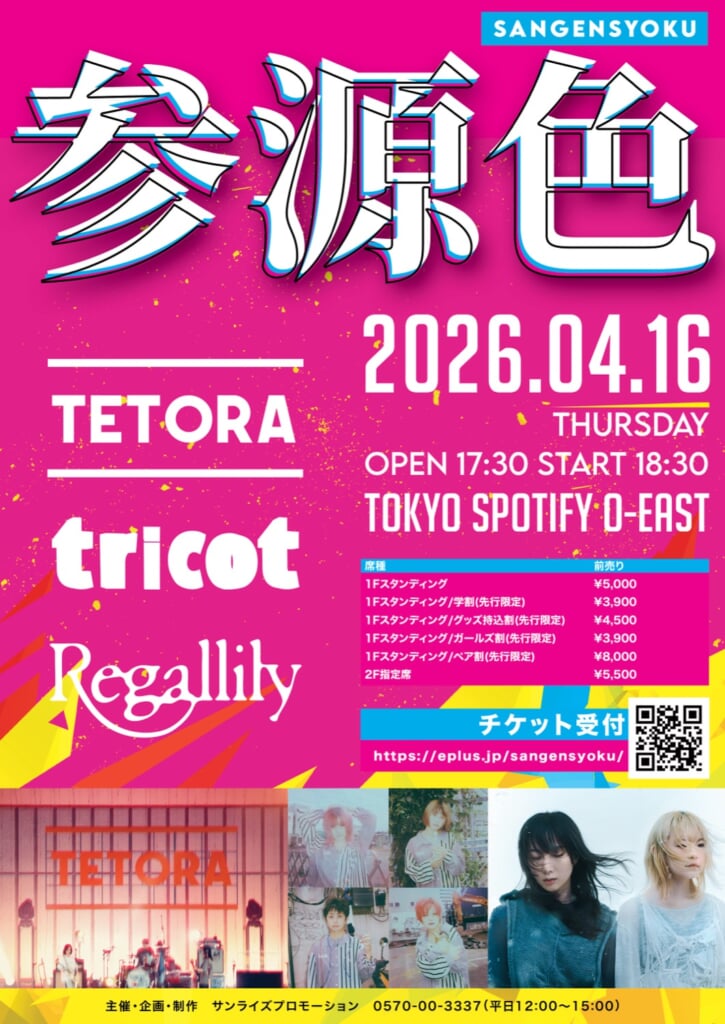 音楽イベント<参源色 – sangensyoku->でTETORA、tricot、リーガルリリーが競演