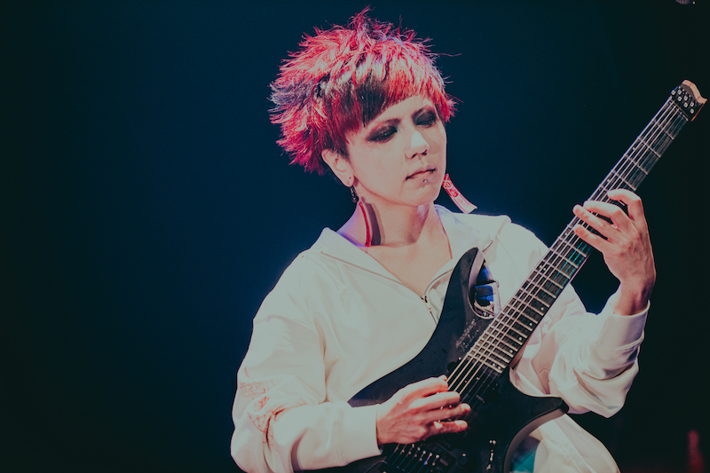 だからこそ、「玉砕メランコリィ」や「帝都に死す」ではイントロからZ(G)と楓(G)のツインギターがいかんなく個性を発揮していた。R指定は昔からテンポやリズムに非常にこだわって楽曲を作っており、大前提としてマモの歌声を際立出せるのはもちろんのこと、跳ねるような疾走感の中で繰り出される攻撃性を特徴としている。それが点となって表現されるのではなく、すべての音がつながったときにR指定として成立する。だから、ライヴではマモだけでなく楽器隊の演奏技法にも目がいってしまう。